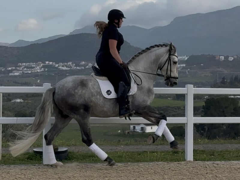 Callisto de CT, zugelassener PRE-Hengst, geboren 2021, derzeit 1,65 m groß. Direkt vom Züchter zu verkaufen. Callisto ist ein Pferd mit großem Potenzial im Dressursport. Er zeigt außergewöhnliche Bewegungen, eine beeindruckende Arbeitsmoral und viel Energie. Der Hengst stammt von unserem eigenen Zuchtbetrieb und ist seit seiner Fohlenzeit ein verspieltes, neugieriges und mutiges Pferd. Er hat eine freundliche Persönlichkeit, und es ist unmöglich, nicht zu lachen, wenn man in seiner Nähe ist. Im Sattel vermittelt er ein so angenehmes Gefühl, hat eine natürliche Aufrichtungshaltung, starke Hinterhand und ist unglaublich weich zu reiten – sowohl im Sattel als auch im Maul. Er ist auf großen Weiden mit gutem Gelände zusammen mit seinem besten Freund aufgewachsen und wurde stets mit einer ausgewogenen, nährstoffreichen Ernährung versorgt. Das spiegelt sich in seiner korrekten und kräftigen Konformation wider. Callisto ist ein zugelassener Hengst, hat aber bisher keine Deckakte durchgeführt. Er steht in Südspanien, und wir unterstützen Sie bei allen Schritten im Kaufprozess. Mehr über uns erfahren Sie unter www.ct-equestrian.com und www.cthorsesales.com Kontakt: info@cthorsesales.com