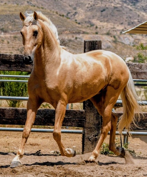 Este hermoso caballo de color dorado busca un hogar definitivo 🏡 Posee un carácter maravilloso, muy, muy dócil, por lo que, a pesar de su juventud, es adecuado tanto para jinetes principiantes, como para reincidentes, jinetes temerosos y novatos. Está acostumbrado a ser montado principalmente en campo abierto. También en el picadero es excepcionalmente tranquilo, muy fácil de montar y completamente confiable. Gracias a su carácter suave, incluso niños sin experiencia ecuestre pueden montarlo. Tiene un trote absolutamente tranquilo y muy cómodo para el jinete. Su galope también es calmado, regular y ya en buena forma. Se ha comenzado con la técnica de paso y pié de galope. Es muy atento a su jinete y muestra buena disposición para el trabajo. Con sus excelentes movimientos, puede incluso dedicarse a la doma clásica. ‼️ Disponemos de varios palominos, así como de otros colores especiales como buckskin, champagne, perlino, etc....‼️‼️ No tiene ninguna mala costumbre. Si estás interesado o deseas más información, no dudes en contactarme. ‼️Por favor, incluye tu número de teléfono para que pueda ponerme en contacto contigo lo antes posible‼️ Las visitas y pruebas de monta se pueden concertar con cita previa. Nos encargamos de organizar el transporte con mucho gusto 🚛