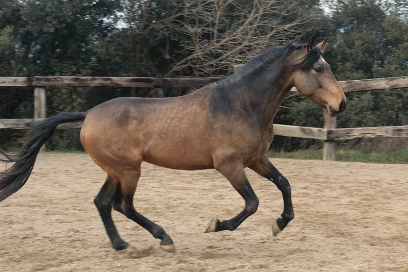 Llevant is an impressive P.R.E. stallion, born in April 2021, with a current height of approximately 1.68 m and an estimated final height of 1.70 m. His extraordinary color and impeccable character make him a truly special horse. He is registered with the ANCCE and is absolutely well-behaved and uncomplicated on the ground. Llevant is already accustomed to rider weight, but has not been further trained, making him a perfect partner for someone who enjoys developing a young horse according to their own ideas. He is an all-rounder with potential, open to all disciplines of riding – from classical or baroque dressage to working equitation, horsemanship, and relaxed trail rides. His calmness and confidence in the field testify to his brave character. His intelligence and affinity for people make him an exceptional dream horse, already impressing with his versatile qualities and offering plenty of development opportunities for the future. Llevant is located in Catalonia, Spain, and can be viewed there at any time. I am happy to assist you with organizing horse transport. Llevant is still a stallion. Castration before departure is possible upon request.