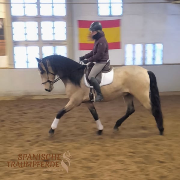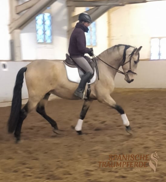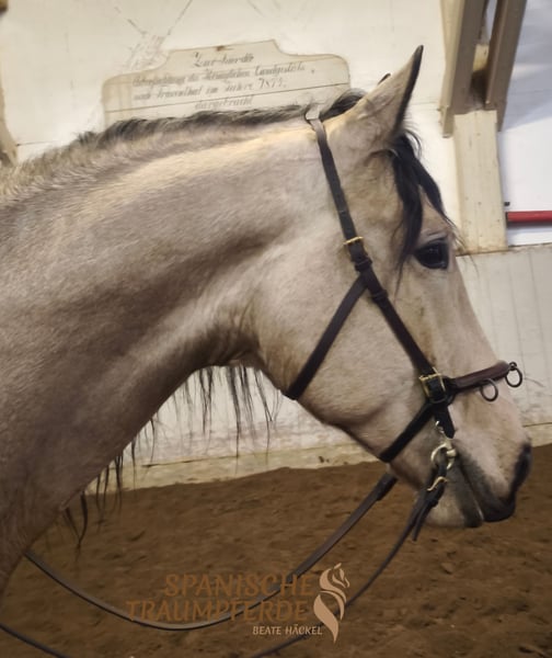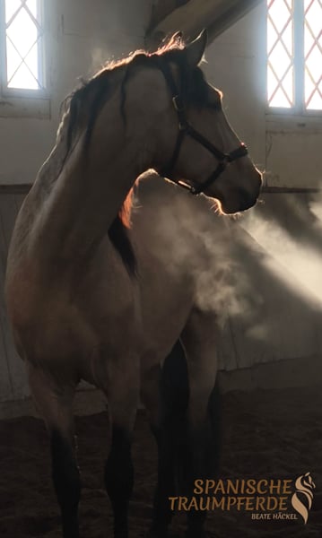 Was für ein zauberhaftes Pferd!!! Unser fünfjähriger PRE-Falbwallach ✨ROLEX SH✨ ist ein ganz wundervolles Pferd und seinem Namen zurecht, ein exklusiver Vertreter seiner Art. Dieses Pferd ist im Umgang ein wahrer Schatz😍, unter dem Reiter sehr leichtrittig und angenehm weich zu sitzen. Ganz besonders ist seine Großrahmigkeit. Für die Liebhaber des etwas größeren spanischen Pferdes ist ROLEX SH mit seinem derzeitigen Stockmaß von 171cm das ideale Pferd. Dazu kommt sein traumhafter Behang und seine wundervolle Sonderlackierung. Alles in allem ein spanischer Traum auf vier Beinen. Röntgenbilder liegen vor. Standort: 23795 Traventhal Ein Kennenlernen unseres ROLEX ist nach Terminabsprache nahezu jederzeit möglich. Für diesen Termin nehmen wir zum Schutz unserer Pferde eine Pauschale von 50,-