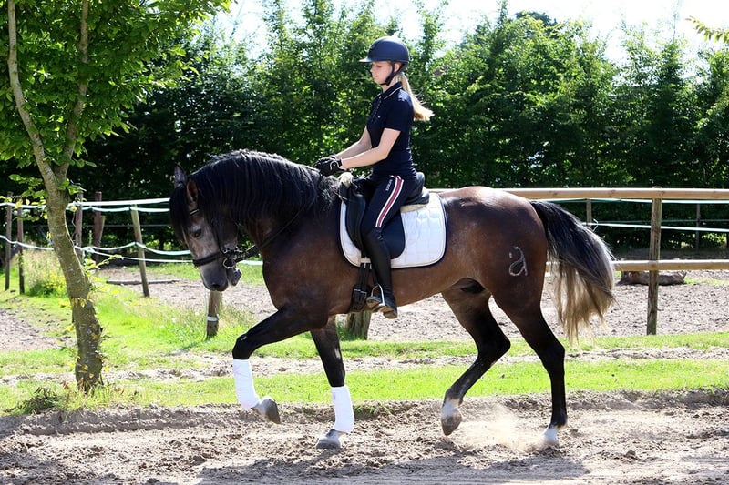 Pure bred ANCCE registered PRE gelding. This young boy will fill out into a 16 hands elegant horse . He has a steady temperament and has already been hacking out in a variety of environments. He can go solo or in a group on hacks. His schooling is going really well and he can be ridden by children or beginners without fear yet he has an exciting forward outlook. He will make a great all round horse and has potential for competition jumping and dressage or simply the most good looking horse in the stables ! All our horses are bred on site and developed by love and care and this is why they have no vices at all. Pronto is out of a very forward PRE mare who has passed on his sharpness in movement. His sire has given him long legs, great posture and a wonderful temperament. He loves to please. He will continue to be schooled every day until he is sold by our professional staff.