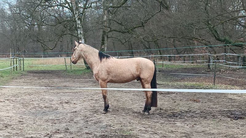 Stijlvolle allrounder zoekt nieuw thuis Vanwege een reductie van de voorraad wordt een expressieve PRE-ruin verkocht – 6 jaar, ongeveer 1,66 m (groeit nog) – een echte allrounder, talentvol en karaktervast. Zijn karakter toont zich als dat van een knuffelzachte grote hond die altijd wil gefallen en qua temperament meer lijkt op een niet-typische PRE. *Vanwege een behandelde maagproblematiek wordt hij onder de marktprijs aangeboden.* Meer informatie graag op aanvraag. Deze volle PRE-ruin valt op door zijn mooie uitstraling en een liefdevol, zeer knuffelbaar karakter. Omdat hij een laatbloeier is, heeft hij voldoende tijd gekregen om zich te ontwikkelen. Vanaf de grond is hij voor alles te gebruiken: longe, dubbele longe en de beginselen van een rijopleiding heeft hij geleerd en hij doet dit met vertrouwen. Bodentraining, wandelen, cavaletti, vrijspringen, rijden aan de hand en in het donker rijden, alles kent hij en doet hij goed. Onder het zadel is hij nog volledig onverdorven. Hij staat netjes stil tijdens het opzadelen en afzadelen, en is veilig gereden in de drie gangarten aan de longe. Vrij rijden doet hij braaf stap en draf, maar dit moet nog verder worden bevestigd. In het terrein toont hij zich betrouwbaar – of hij nu alleen of in een groep rijdt, hij blijft geconcentreerd en ontspannen. In de omgang is hij een zeer braaf paard, laat zich overal aanraken en is zeer sociaal in de kudde. Uiteraard wordt hij regelmatig met mineralenvoeder, ontwormingsmiddelen, hoefverzorging en vaccinaties verzorgd en osteopathisch behandeld. Zijn fundament is stabiel en zijn hoeven zijn top, hij loopt probleemloos over hout en steen zonder hoefbeslag. Wat vooral opvalt, is zijn sterke mensgerichtheid: hij bouwt graag een hechte band op met zijn vertrouwenspersoon en werkt gemotiveerd mee zodra het vertrouwen er is. Een ideale partner voor ruiters / bestuurders die op zoek zijn naar een volledig onverdorven, lief en veelzijdig talentvol paard dat zowel in de dagelijkse omgang als in training enthousiasmeert. Hij voelt zich het best in een open stal of op de wei. Alleen boxen houden is niet gewenst, omdat hij zeer robuust is en zo ook gehouden is. Video’s op aanvraag. De prijs is bespreekbaar. Een passend thuis is belangrijker! Zijn accessoires kunnen, indien gewenst, ook worden meegegeven. Om ruiterrijplezier te voorkomen, rekenen wij voor een proefrit €30, dat bij de aankoop wordt verrekend.