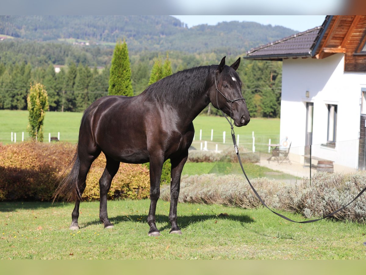 Escalero del Cuero, born in 2020, is a large-framed, exceptionally typy PRE from our Yeguada del Cuero breeding program in Kefermarkt. He impresses with a harmonious conformation, expressive basic gaits, and an overall very balanced appearance. His pedigree is particularly interesting: as the son of our stunning breeding mare Coral VRM and our elegant breeding stallion Huracan VAP, he possesses excellent qualities for rideability, type, and quality. Escalero is especially remarkable for his outstanding temperament: affectionate, people-oriented, curious, and exceptionally friendly in daily handling. He has already been finely and gently backed and is familiar with both bitless riding and work with a bridle. He demonstrates a good understanding of balance and healthy, correct movement. Through versatile training—including horsemanship, long-reining, groundwork with poles, and initial small jumps—he has developed appropriately for his age. The work is always calm and biomechanically sound, which is reflected in his relaxed demeanor and cooperation. Escalero already knows how to move healthily under saddle and on the longe line, and he shows motivation and eagerness to learn. Working with him is simply a pleasure. Raised in a herd environment with plenty of movement and year-round turnout outdoors, he is well adapted to natural conditions, robust, and barefoot. His nutrition is strictly natural, consisting of high-quality, ventilated organic hay and balanced minerals. A young PRE with an excellent foundation, versatile training, and a particularly pleasant temperament—truly a horse with great potential. More information about the stud: www.purarazaespanola.at