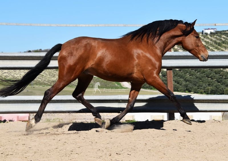 Carattere amabile, curioso, montato ai passo, alto, buone andature e genealogia di qualità. Genealogia: Escalera, Yeguada Militar. Il nonno Obcecado è qualificato. www.elegante-andalusier.com