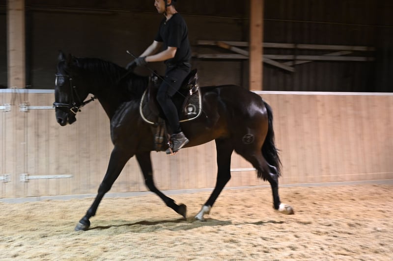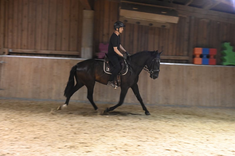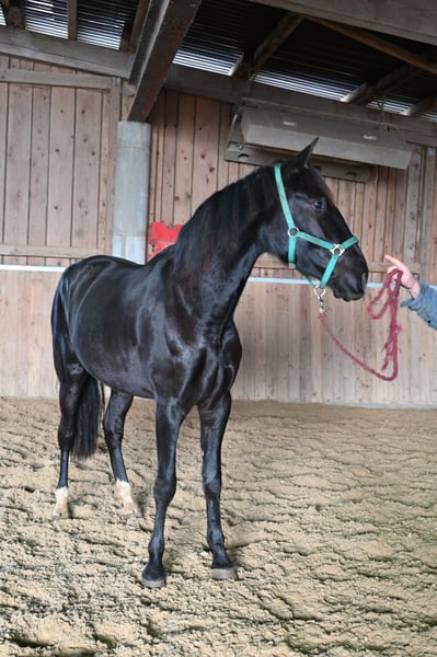 Wegen einem Beckenschiefstand deutlich unter dem ursprünglichen Wert ab zu geben. ( Wie er zu dem Beckenschiefstand gekommen ist wurde mir leider verheimlicht, ich habe ihn aus gesundheitlichen Gründen meinerseitz Auswerts gegeben und kam so und stark abgemagert zurück. Er wurde vom Osteo mehrfach behandelt und ist lahmfrei. Bei ernsthaftem Interesse bitte PN an mich. Die Fotos sind aktuell. Decano ist ein gelassener, gross gewachsener PRE in der Farbe Rappe. Sein Charakter ist kaum zu übertreffen, sein freundliches Wesen, seine herzliche, freundliche und offene Art sind überragend, er erobern einem im Sturm. Decano wartet länger Zeit sehr geduldig und wird nicht hektisch. Der sanfte Wallach ist umgänglich und lernwillig, dabei zeigt er sich neugierig und kopfklar. Decano ist bei ANCADES registriert. Sein aktuelles Stockmass beträgt derzeit ca. 174cm. Decano ist mit seinen 5 Jahren noch nicht ausgewachsen. Er kommt aus einer Leistungszucht, zwei Halb-Brüder von ihm, die in der selben Züchter geboren sind und den selben Vater haben, laufen erfolgreiche im Dressursport. Decano kommt mit jedem Artgenossen gut klar, er ist sehr verspielt. Die Offenstall Haltung wie auch die Boxenhaltung sind ihm bekannt. Im März 2024 wurde er kastriert, er kann gut mit Stuten zusammen gehalten werden. Decano ist in allen 3 GGA in der Halle und im Gelände angeritten, er macht artig und motiviert mit und kann schon von Jugendlichen geritten werden. Das Laufband Training macht er ebenfals brav. Im Gelände zeigt er sich unerschrocken, verkehrssicher und artig. Er ist Schmiede und verladefromm. Decano ist geimpft und regelmäßig entwurmt. Er wurde vor Osteopathin durchchecket. Seine Mutter hies, Duquesa CCLXXXIV und stammte von Trajano ab. V Genio GM, MV: Trajano