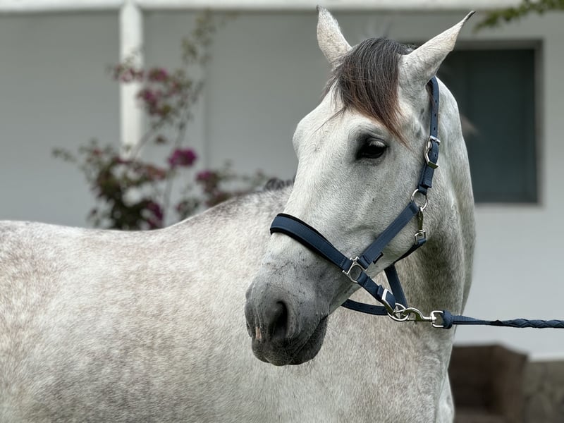 5-jähriger, kastrierter PRE-Hengst. 1,75 m Stockmaß. Sportliche Statur. Drei sehr gute Gangarten. Ideal für die Dressur. Gewöhnt an Ausritte ins Gelände. Mit viel Arbeitswillen und leicht zu handhaben. Ohne jegliche Laster und mit sehr gutem Charakter.