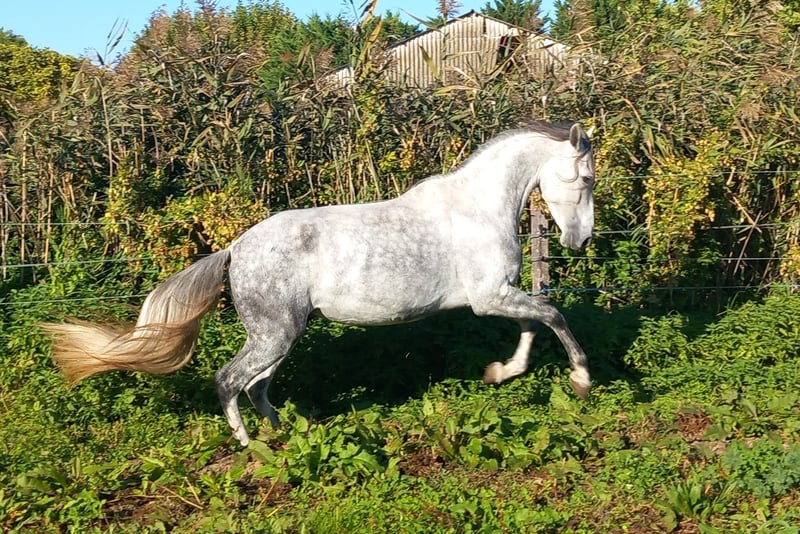 Disponible à la vente 🍀 Jericho du Bonheur 🍀 Hongre, plein papier PRE, 7 ans en 2026, toise 1m57 Par Querido XVII et Idilica Quin (par Burlador Quin) Les dernière photos sont celle de son père Querido XVII. Modèle harmonieux avec beaucoup de crins. Il saura faire chavirer les cœurs avec son tempérament doux et joueur. Jericho dispose de belles allures, il est bien équilibré et ne billarde pas. Idéal pour dressage, MCI, équitation de travail, spectacle ou pour un cavalier souhaitant se faire plaisir avec un cheval ayant de belle capacité. Jericho à été mis au travail l'année dernière afin de préserver son intégrité physique et mentale, il reste donc vert dans le travail et demandera un cavalier ayant un peu d'expérience. Il est visible en Drôme proche de Valence (26) Son budget est évolutif avec le travail. Plus d'informations au 07.87.71.03.38