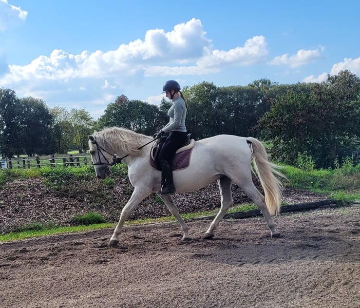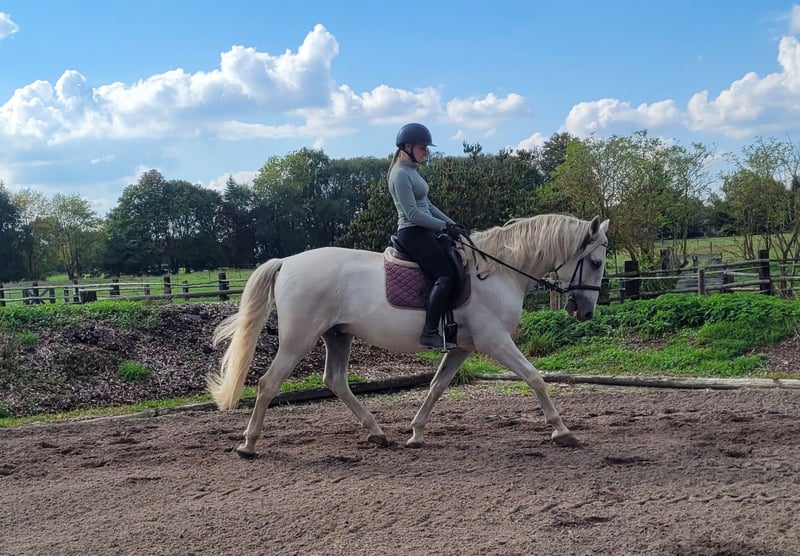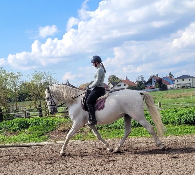 SANTOS is a beautiful, very elegant P.R.E. gray gelding of absolute top class. His God-given calmness and serenity allow even a somewhat insecure rider to quickly gain trust in this magnificent fellow. SANTOS forgives riding mistakes and responds when he senses that his rider is becoming unsure. SANTOS is a horse that literally looks out for his rider. He is very easy to ride and comfortable to sit on. He has three beautiful basic gaits. He is very people-oriented and loves to be pampered. He particularly enjoys working with children and young people. We have not been able to discover anything that could significantly disturb this magnificent fellow's calmness. Whether in the arena, all-weather arena, or on the trail, SANTOS moves forward well, is not lazy, but also not too fast. SANTOS is a horse that adapts to the demands of his rider, who adjusts to his rider. SANTOS embodies the ideal family horse and is also suitable for somewhat insecure riders. Not only under saddle but also during groundwork and in everyday handling, SANTOS provides security with his good-natured temperament and shows his great trust in humans. We can also very well imagine SANTOS as a therapy horse or as a teacher in a riding school. A horse that does not present its person with new challenges every day. For more information about our horses and our work, please contact 0171/5269002 Hubert Seitle and 0151/12775701 Uta Großmann. General information about our horses and our work can also be found at www.ps-seitle.de THERAPY HORSES Horse Sports Seitle in DONAUMOOS