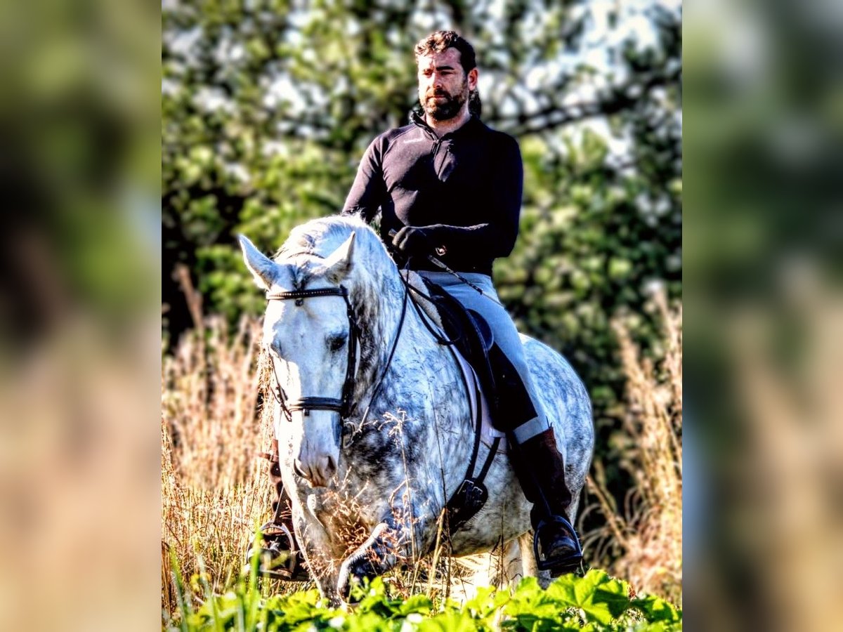 KALAMBRUJO... A very special gentleman in search of his *forever home*. This impressively beautiful PRE stallion is 7.5 years old, stands 1.58 meters tall, and is muscular. He captivates not only with his friendly and human-oriented nature but also as an overall striking presence. With his exceptionally comfortable gaits, he is perfectly suited for Working Equitation, dressage, and recreational riding. His outstanding pedigree (Plaza de Armas) already hints at his high quality and his incredibly lovable character. The stallion is well-trained, completely reliable in handling, and an excellent choice for riders seeking a versatile partner. He is primarily ridden in the terrain, bringing 100% safety and routine to every ride. In the riding arena, he works convincingly and is pleasant to ride in all gaits. He already masters simple lateral movements at walk and trot. His very agreeable nature makes him an ideal companion for trail rides, walks, and relaxed training sessions. KALAMBRUJO is ideally suited for the ambitious leisure rider, for those returning to riding, and even for beginners, as he provides security and a pleasant riding experience. If you like this charming grey, please contact me with your phone number so I can get in touch with you as soon as possible. We always have horses with different levels of training available. All horses come from private, loving owners. For inquiries or further information, please feel free to contact me. A personal meeting is always possible!