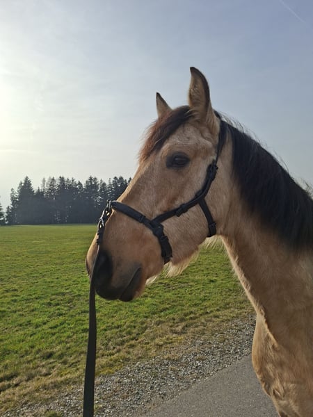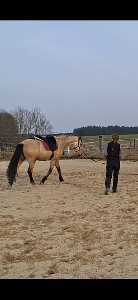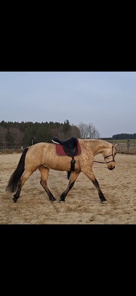 Zum Verkauf steht der 7-jährige PRE Wallach "Camaro". Er ist ca. 1,63 m groß, korrekt gebaut, hat eine sehr gute Galoppade und ist menschenbezogen. Im Umgang ist er brav, ist schmiede- und verladefromm. Derzeit ist er barhuf. Er befindet sich aktuell seit 2 Monaten bei mir in Ausbildung, da er zuvor leider schlechte Erfahrungen beim Reiten gesammelt hat und hierdurch beim Reiten unter Stress steht. KEIN Bocken. Er ist ein sehr sensibles und gleichzeitig dominantes Pferd, was ihn, gepaart mit seinen Vorerfahrungen, definitiv zu KEINEM ANFÄNGERPFERD macht. Mittlerweile geht er wieder Schritt und Trab unter dem Sattel in der Halle und auf dem Platz und geht alleine ins Gelände. Wir würden uns einen erfahrenen, feinfühligen Menschen für ihn wünschen, welcher mit Ruhe und Zeit weiterhin an seinen Themen arbeiten kann. Gerne kann er alternativ auch zur weiteren Ausbildung bleiben. Ich freue mich über ernstgemeinte Anfragen mit einer kurzen Vorstellung. Besichtigung gerne möglich nach Absprache (40€). Standort bei 87435 Kempten.