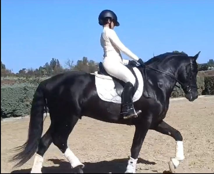 **Sale ad: Elegant PRE stallion for sale** We are offering an impressive PRE stallion for sale. This noble black stallion was born in 2019 and impresses with his elegant appearance and harmonious conformation. With a height of 164 cm, he presents himself as an ideal partner for the ambitious leisure rider. Velero is not only a particularly beautiful horse, he also has a very good character. Which is not necessarily the norm for Spain, he has been given all the time he needs to grow and has only been under saddle for just under a year. He is super sweet and is presented here in the video by a 14-year-old riding student. Velero is almost pure Yeguada Militar bred and has big names like Leviton and Remache in his pedigree. Velero can still be ridden or gelded on site and of course you can visit and test ride him at any time. Velero is based in Huelva/Spain. We are happy to help with transportation. An acu can of course be done on site.