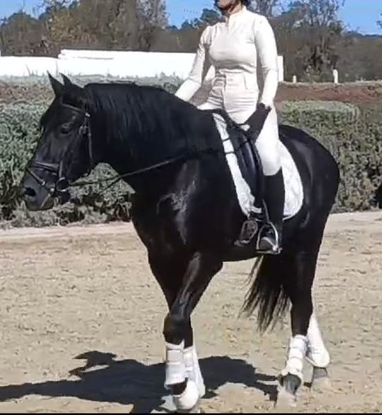 **Verkoopadvertentie: Elegante PRE hengst te koop** We bieden een indrukwekkende PRE-hengst te koop aan. Deze nobele zwarte hengst is geboren in 2019 en maakt indruk met zijn elegante verschijning en harmonieuze bouw. Met een stokmaat van 164 cm presenteert hij zich als een ideale partner voor de ambitieuze vrijetijdsruiter. Velero is niet alleen een bijzonder mooi paard, hij heeft ook een heel goed karakter. Hij heeft alle tijd gekregen om te groeien en is nog maar net een jaar onder het zadel. Hij is superlief en wordt hier in de video voorgesteld door een 14-jarige paardrijleerling. Velero is bijna puur Yeguada Militar gefokt en heeft grote namen als Leviton en Remache in zijn pedigree. Velero kan nog steeds ter plekke bereden of geruind worden en natuurlijk kun je hem altijd bezoeken en een proefrit maken. Velero is gevestigd in Huelva/Spanje. We helpen graag met transport. Een acu kan natuurlijk ter plekke gedaan worden.