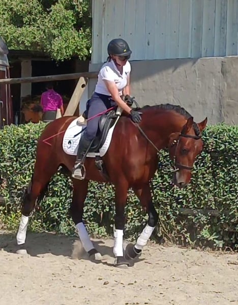 Este semental PRE marrón de 1,66 m de altura, nacido en 2019, es un alma absoluta de caballo. Podrías pensar que quería ser más un perro faldero. Vino directamente del criador y fue montado allí suavemente. En casa está en una gran caja de paddock con contacto directo y conexión con otros caballos, incluidos los sementales. Es un caballo absolutamente amigable y social, sin modales de semental. Debajo de la silla de montar, se presenta bien en la inclinación, fino en las ayudas y siempre muestra alegría en el trabajo, así como buenos pasos básicos. Le gusta ir fuera de la carretera, ya sea solo o en grupo con yeguas, no hay problema. No solo confía en su piloto, sino que también siempre le da al piloto una sensación buena y segura sin ser aburrido o perezoso. Como un cambio de la equitación, conoce el trabajo clásico en la mano, estocada, doble estocada, trabajo con pértiga o simplemente dormitando perezosamente al sol. Está acostumbrado a máquinas y vehículos ruidosos, pollos de corral que a veces aparecen en la pista de equitación, vacas, perros y mucho más. Absolutamente intrépido, domina todo, y si le resulta divertido "asustarse", después de todo, todavía es un caballo joven, siempre es controlable sin mucho esfuerzo. Es un caballo versátil y está listo para cualquier diversión. Él ama a la gente, solo un gran compañero, pero también quiere ser empleado. Su hermano completo, que es 2 años mayor, ya tiene éxito en doma clásica en su grupo de edad. La información se puede enviar con mucho gusto. Las radiografías de septiembre de 2022 están disponibles. Es Piro negativo, vacunado, regularmente desparasitado y presentado al herrero, se hicieron dientes. Está calzado en la parte delantera y está montado en una brida de agua. Si lo desea, se puede colocar en el sitio. Por supuesto, puede quedarse con nosotros para seguir formándose. Si está seriamente interesado, estaré encantado de transmitirle más información. Hablamos alemán, inglés y español.