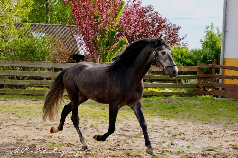 **Annonce de vente : Hongre PRE à vendre** À vendre, un magnifique hongre PRE, né en 2019. Avec une taille impressionnante de 170 cm et son élégant pelage gris foncé, il est un véritable attrait. Ce hongre talentueux est parfaitement adapté à la discipline de dressage et montre déjà des progrès prometteurs dans sa formation. Il est calme à manipuler, monté de manière appropriée à son âge et possède un tempérament agréable, qui convient aussi bien aux cavaliers expérimentés qu'aux débutants ambitieux. Notre hongre PRE n'est pas seulement un cheval sportif, mais aussi un partenaire fidèle qui apporte beaucoup de joie et de variété dans le quotidien équestre. Il est né ici et les deux parents peuvent être visités. Pour toute question ou pour plus d'informations, nous attendons votre message avec impatience ! Les visites sont possibles à tout moment sur rendez-vous.