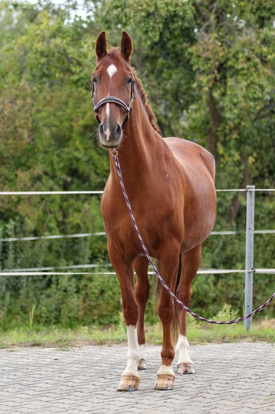 Ich suche ein neues 5* Zuhause für meinen 7 jährigen sportlichen PRE Fuchswallach. Amicello AP ist 2018 geboren und stammt aus einer liebevollen, deutschen PRE Zucht (Andalusian-Pearl/Sachsen). Er hat ein Stockmaß von 1.61m. Er besitzt volle ANCCE Papiere. Amicello ist ein Pferd mit Charakter und angenehmen Temperament deswegen möchte ich ihn nicht an reine Anfänger abgeben. Er wurde 3,5 jährig schonend angeritten und hatte immer wieder Pausen aufgrund von Wachstum und körperlicher Entwicklung. Seit knapp 5 jährig geht er wieder regelmäßig unter dem Sattel. Amicello geht brav in der Gruppe sowie auch alleine ins Gelände. Er ist in jeder Situation immer händelbar. Nie bösartig, kein Bocken oder Steigen. Amicello steht bei mir in einer kleinen Herde im Sommer auf 24/7 Weide und im Winter tagsüber auf dem Paddock und nachts in der Box. Offenstallhaltung kennt er auch. Er ist in der Herde eher ranghoch. Er hat momentan eine Reitbeteiligung (16 Jahre) die ihn 1x die Woche im Reitunterricht reitet oder vom Boden aus arbeitet. Auch meine Tochter (9) kann ihn schon gut alleine im Schritt/Trab auf dem Platz reiten, er ist dabei immer artig. Amicello geht unter dem Sattel brav alle 3 GGA, wobei ihm der Galopp noch etwas schwer fällt. Er zeigt sich immer stets bemüht beim reiten und ist sehr lernwillig. Er wurde hauptsächlich dressurmäßig gearbeitet, kennt Freispringen, Bodenarbeit und Doppellonge. Wir waren schon auf einigen Auswärtstrainings und Lehrgängen, wo er trotz fremder Umgebung und Aufregung immer cool geblieben ist. 2025 war er auch das erste Mal beim traditionellen Osterreiten dabei und hat es mit Bravour gemeistert. Ich suche für ihn DEN Menschen, der ihn genauso liebt und ihm ein 5* Zuhause schenkt. Kein Notverkauf, Platz vor Preis! Inkl. angepassten Prestige Top Dressage Dressursattel in Größe 17 Zoll. Weiteres Zubehör kann gegen Aufpreis dazu erworben werden (Decken, Schabracken, Gamaschen ect.) Ein Probe reiten gegen eine Gebühr von 30€ ist jederzeit möglich, diese werden dann bei Verkauf verrechnet um Reit-Tourismus vorzubeugen! Keine Händler. Keine Schulbetriebe.