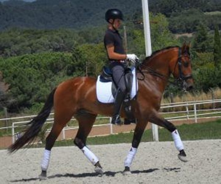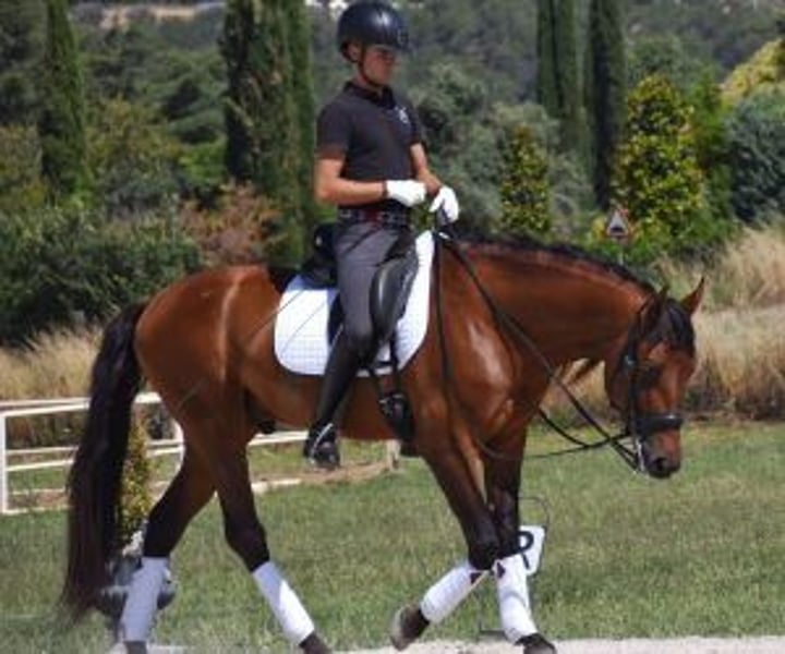 Castrato, buona radio, esegue cambi di volo, super simpatico. Vorremmo presentarvi questo fantastico cavallo che ha superato tutte le nostre aspettative! Ha buone radiografie ed è esente da pirosi, il che garantisce la sua eccellente salute e l'idoneità all'agonismo. Questo esemplare esegue con facilità i cambi di volo e ha iniziato il suo addestramento con piaffe e piroette, dimostrando un'eccezionale predisposizione all'apprendimento e ai progressi nel dressage classico. Ciò che ci piace di più di lui è la sua facilità e sicurezza. È molto facile da montare e molto sicuro in tutte le situazioni: va in campo senza problemi, sia da solo che accompagnato da altri cavalli. Non è spaventato da moto, auto o altre distrazioni, il che lo rende perfetto per godersi passeggiate rilassate e sicure. Se siete alla ricerca di un cavallo versatile, con buoni movimenti e un carattere affidabile, questo PRE di 6 anni potrebbe essere l'opzione ideale per voi. Non esitate a contattarci per ulteriori informazioni o per organizzare una visita. IberHorse.com : Ci dedichiamo a mettere in contatto i cavalieri con cavalli eccezionali. Se questo cavallo ha catturato il vostro interesse e vedete il potenziale per diventare il vostro prossimo grande compagno, non esitate a contattarci per ulteriori informazioni o per organizzare una visita. Siamo qui per aiutarvi a trovare il cavallo perfetto per le vostre esigenze e aspirazioni.