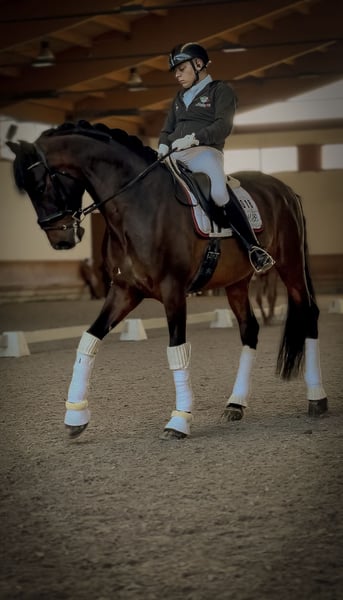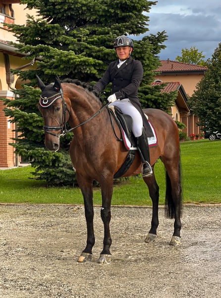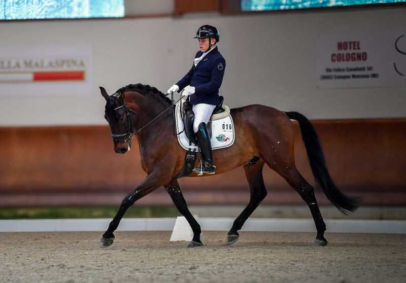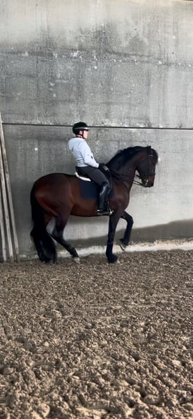 Azor MP PRE gelding with ANCCE documents Born in 2018 (7 years old) 16.1 hh Well-trained Level M (flying changes, shoulder-in, lateral work, half passes, pirouettes, some series of flying changes, and beginning piaffe) Is the horse registered with FISE? He has competed in E, F, and M categories, achieving good results, up to 65% in M. Currently in training and competition. 2nd place at the Iberian Master 2025, Evora Level (FISE curriculum available on EquiResults) A highly reliable horse with an exceptional character, very cooperative and fun, free of any vices both on the ground and under saddle. Regular movements with high-quality gaits. Saddled with a snaffle and bridle. PRICE REDUCED due to a slight scar on the left front tendon; despite this, the horse is healthy and moves regularly in all three gaits. Mornico al Serio (BG) For more information: Nicolas +39 348 5842676