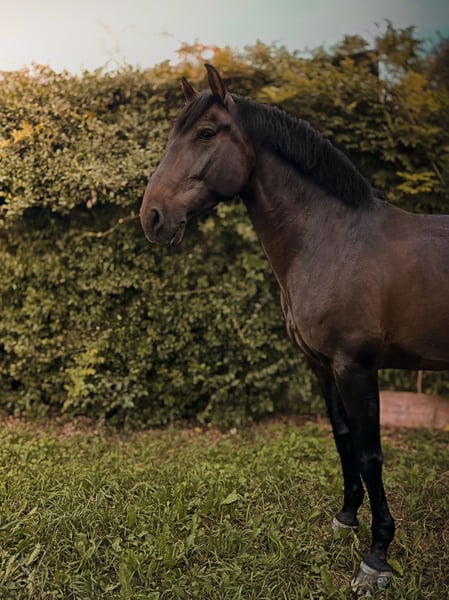 Azor MP PRE gelding with ANCCE registration? Born in 2018 (7 years old) 16.1 hh Well-trained Level M (lead changes, shoulder-in, lateral work, leg-yields and pirouettes, some series of flying changes, and starting piaffe) Is the horse registered with FISE? He has competed in E, F, and M categories, achieving good results, up to 65% in M. Currently in training and competing. 2nd place at the Iberian Master 2025, Evora Level (FISE competition record available on EquiResults) A highly reliable horse with an exceptional character, very cooperative and fun to ride, free of any vices both on the ground and under saddle. Smooth movements with a high-quality trot. Ridden with a snaffle bit and bridle. PRICE REDUCED due to a slight scar on the left front tendon; despite this, the horse is healthy and moves regularly at all three gaits. Mornico al Serio (BG) For more info: Nicolas +39 348 584 2676