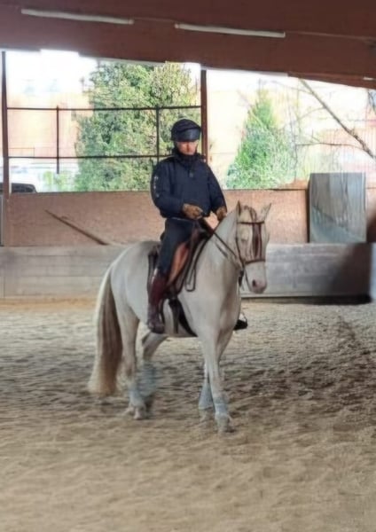 We are offering our purebred PRE gelding for sale. Fandango's coat shines like pearls in the sun. His long mane and slightly wavy tail give him a lot of expression and beauty. His clear blue eyes seem to look straight into your heart. The handsome gelding was born on May 1st, 2017, and stands at 1.60 meters. He is a true gentleman in handling. Fandango has been ground-trained, knows all leading positions, and has been used in coaching sessions. He quickly learns classical dressage movements and loves standing on the pedestal. He approaches the mounting block patiently and is calm when mounting and dismounting. Under saddle, he offers comfortable, easy-to-sit gaits. Fandango masters the basic gaits and has been ridden in lateral work. He also proves to be a confident partner during hacks and in traffic. Fandango enjoys learning new things, and it’s a pleasure to continue developing him. The gelding is farrier- and loading-safe and travels alone in the trailer. Fandango has papers from the ANCCE. He combines the finest qualities of his ancestors, the Cartujano horses, known for their elegance and willingness to learn. We are selling Fandango only with a heavy heart, to the best home in the world. Location is 37574 Einbeck.