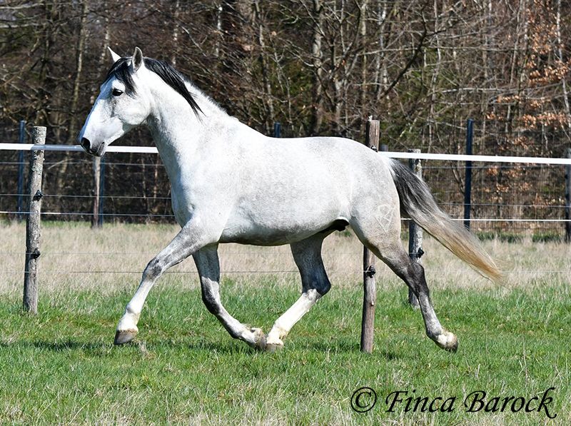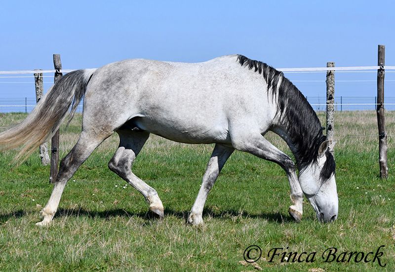 Rasse: PRE Name: Capitan RV Geschlecht: Hengst Stockmaß: 165 cm Alter: 08.09.2017 Farbe: Schimmel Preis: 17.000 € Vater: Junco DP (Calificado) v. Duque CXIII (Calificado, Mejorante und Elite!) Mutter: Ladina VII v. Jugueton IV Capitan ist ein imposanter Hengst mit freundlichem Wesen und solider Ausbildung. Er kennt sehr viel Bodenarbeit und Arbeit an der Hand. Capitan reagiert hier fein und auf leichte Hilfen. Schulterherein, Travers, Renvers, Traversale macht er an der Hand sehr souverän. Ebenso zeigt er einen schönen Spanischen Schritt an der Hand. Auch das Einparken an die Aufstiegshilfe klappt wunderbar. Unter dem Reiter sind die Seitengänge im Schritt schon gut gefestigt und im Trab werden sie immer besser. Capitan hat eine tolle Bergaufgaloppade welche dem Reiter sofort ein Lächeln ins Gesicht zaubert. Er wurde mit Ruhe ausgebildet und hat Zeit zum reifen bekommen. Gelände kennt er viel und freut sich mit seinem Reiter durch das Gelände zu streifen. In der Freiarbeit ist Capitan ebenso mit viel Elan und Freude dabei. Er ist sehr Personenbezogen. Capitan ist gekört und hat auch bereits Nachzucht. Er hat die Elitehengste Duque CXIII und Educado X in seinem Pedigree. Sein Papa Junco DP ist ein Calificadohengst. Es befindet sich einiges an Cartujanoblut in seiner Abstammung. Im letzten Jahr hat er nicht gedeckt und zeigt insgesamt fast keine Hengstmanieren. Es steht bei uns in der Stallgasse mit Stuten und Wallachen. Er ist der Weitergang mit anderen Wallachen gewöhnt. Er wird von privat als gesundheitlichen Gründen abgegeben. Er hat eine klinische Untersuchung und Röntgenbilder. Kontakt: Finca Barock, Tel. 0173-696 31 81, 56291 Wiebelsheim
