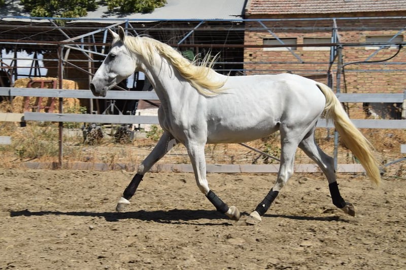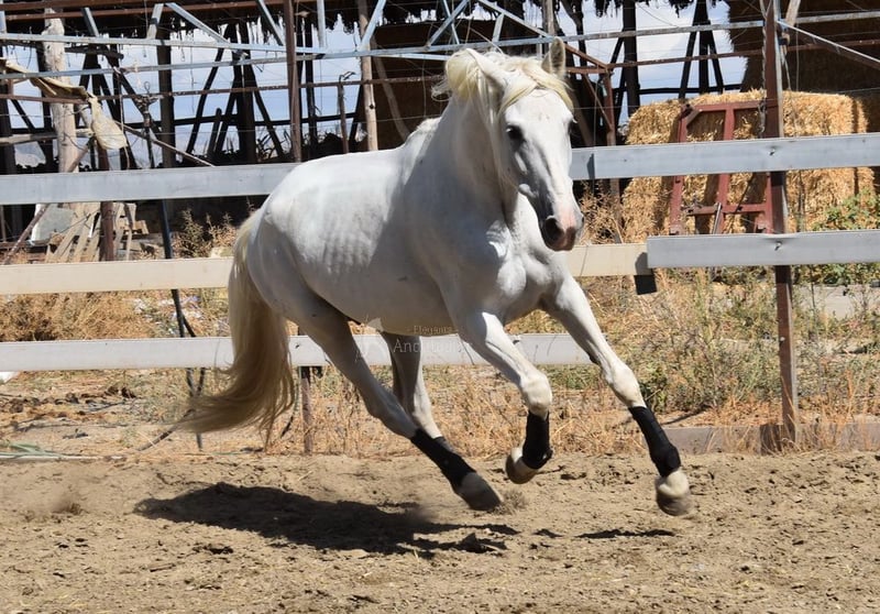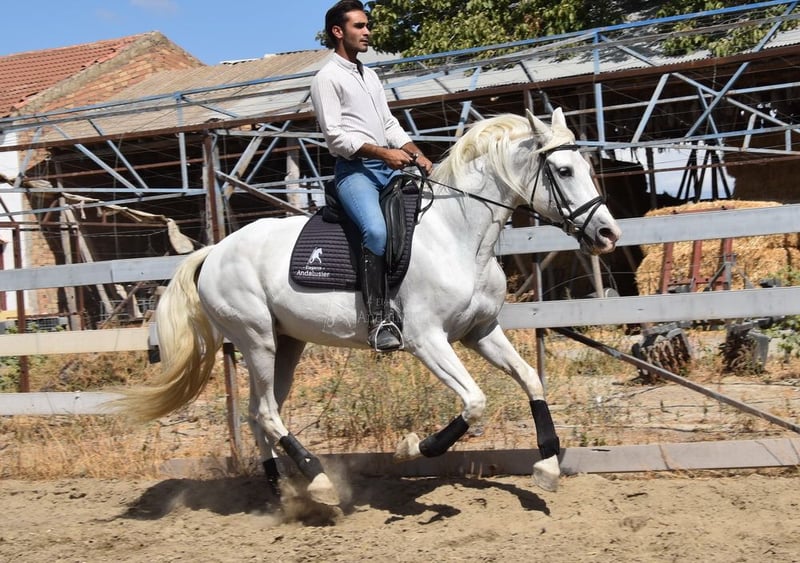 Uroczy charakter, jeźdzona i zaprzęgana w podstawowych chodach, klacz hodowlana, pochodzenie: Yeguada la Rosa, Los Retamales, posiada liczne wybitne przodki. www.elegante-andalusier.com