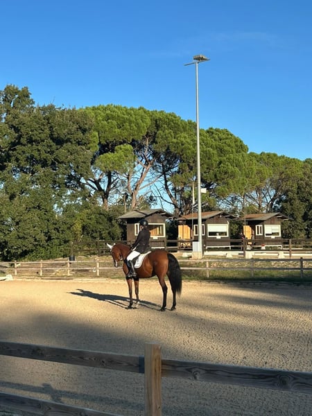 Ze is een PRE-merrie van de paardenfokkerij Senillosa, die in 2026 tien jaar wordt. Ze meet 1,63 m aan de schoft en heeft een dressuurniveau tussen 1 en 3, afhankelijk van het niveau van de ruiter. Ze heeft eerdere wedstrijdervaring in dressuur. Ze is zeer goed te hanteren zowel vanaf de grond als onder het zadel. Perfect voor buitenritten en excursies, zowel solo als met gezelschap. Daarnaast beschikt ze over het keurmerk als fokmerrie. Een ideale merrie voor ruiters die willen beginnen met dressuur of genieten van buitenritten. Voor meer informatie neem gerust contact met mij op.
