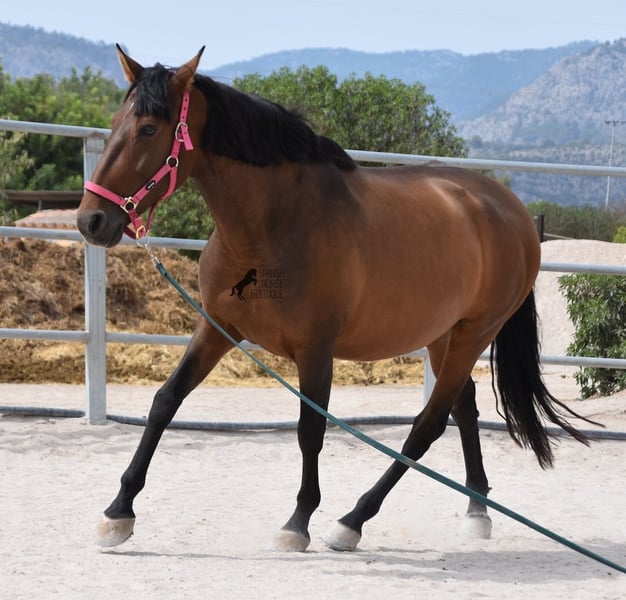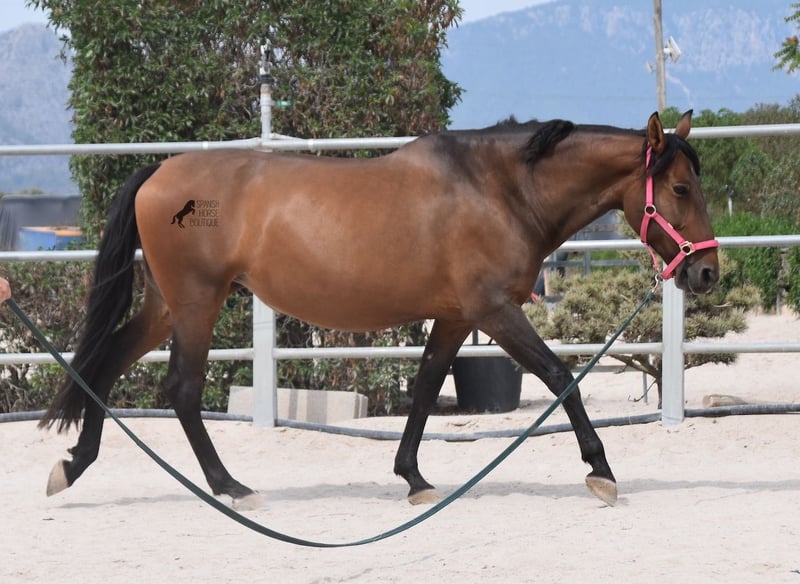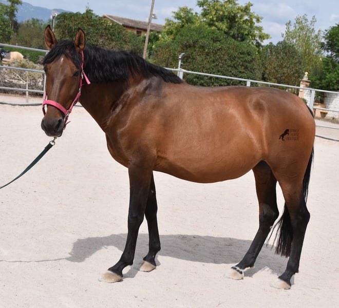 This PRE mare (Andalusian with ANCCE breed certificate), born in 2015, is a kind-hearted soul. As her owner has changed careers and is very busy, she has not been ridden for a year now. She is too good for just lunging and the owner has realized that it would be better for the mare to find a home where she can be kept busy again. She stands 24 hours a day in a paddock with an open stable, goes barehoof and will do almost anything for a carrot and a stroke ;) She is very, very lovingly looked after by the whole family, the only thing she lacks a bit is work to turn her round tummy into muscles. Before the break she was ridden on a basic level, but can also be retrained for other disciplines, such as western. Riding can also be organized on site, both classical English and Western style. Her pedigree is impressive, as she is sired by BOHORQUEZ and also has the exceptional stallion DECO by Yeguada Militar on her sire's side. On her dam's side, she can be traced back to Guardiola and Yeguada Militar. She was bred by a very friendly, horse-friendly breeder in Mallorca, but even there nature sometimes plays its whims. You can see a small indentation on the left side of her neck, which comes from her position in the mare and she has pressed into the neck with her carpal joint. This is NOT an injury, just an optical peculiarity, which will of course be taken into consideration. Place before price! She is currently in Mallorca! Videos and pedigree available on request. I would be happy to organize an AKU, riding, transport or even your trip if you come to see her in person. Details can be found on my website or in conversation. Saludos from Spain