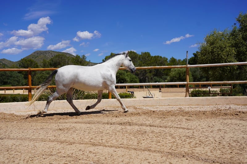 Ihr lieben Züchter - eine fantastische PRE Stute die so wunderbar aufnimmt und vererbt - sie läßt den Hengst immer hervorragend durchscheinen in ihren Fohlen! Gerne kann sie von uns vor Ort noch gedeckt werden mit dem Hengst Eurer Wahl! Wir unterstützen auch gerne bei der Beratung wenn ihr es möchtet! FER AGORA - eine PRE Rarität aus den legendären Linien von der YEGUADA FERRERO und YEGUADA VILAIRE! Auf der Yeguada Ferrero geboren - von MAÑOSO II x JUDIO VII Als Nachfahrin dieser zwei großen Hengst - verkörpert sie das Beste ihrer Vorfahren! Fer Agora stammt aus dem renommierten Gestüt Ferrero, das für seine Spitzenpferde bekannt ist ab - dieses Gestüt steht für Bewegung. Fer Agora ist eine wahre Rarität, ist sie einer der letzten Nachkommen von Mañoso II und verbindet die zwei großen Hengste. Ihre Abstammung macht sie zu einem Juwel in der PRE-Welt. Sie ist eine exzellente Mutterstute und hat bei uns während Corona vor 4 Jahren das erste mal ihr wundervolles, bewegungsstarke Stutfohlen Bienvenue des Ravella ganz alleine und ohne Komplikationen auf die Welt gebracht. Im Jahr darauf wurde Cacique des Ravella geboren ein sehr harmonisch und korrekt gebauter Hengst - beide Fohlen stammen von Poeta de Susaeta ab. Im Jahr 2023 kam dann Ella des Ravella - ein Stutfohlen von LLanero de Martet, sehr groß und sehr gut aufgestellt. Fer Agora hat wirklich ganz hervorragendes Blut und sehr berühmte und erfolgreiche Geschwister bzw. Verwandtschaft....allen voran FER BONACHON, FER GALLARDO, FER BAGO und FER TEMPRANILLO ....uvm.... diese Hengste sind hoch dekoriert und mehrfach Weltmeister besonders FER BONACHON. Agora ist zauberhaft und ich habe mich damals als ich sie 2jährig gefunden habe in ihre Augen und ihren Charakter verliebt. Sie ist eine eher zurückhaltende Stute, aber nicht scheu. Meine FER´s sind allesamt mit einem guten Charakter ausgestattet, und sehr arbeitswillig mit schönen Bewegungen. Agora gibt wirklich das Beste ihrer Vorfahren weiter und lässt aber auch den Hengst schön durchkommen. Sie ist wahrlich die geboren Mutterstute, so kümmerte sie sich um den Kindergarten wenn die anderen Stuten beschäftigt waren. Agora lässt auch mal die anderen Fohlen trinken, daher kann ich mir gut vorstellen, dass sie auch als Ammenstute einspringen würde. Sie ist longiert und kennt Sattel und Trense. Meine Stuten leben ganzjährig auf der Koppel mit Unterstand, kennen aber auch die Box mit Paddock und sind natürlich Schmied und Tierarzt gewöhnt, gehen brav in den Hänger und sind von Kindern zu führen..... Ein Juwel - wenn Sie eine tolle Zuchtstute suchen, die so tolle Eigenschaften verkörpert wie Agora schreiben sie mich an! Wir können die Stute auch noch hier vor Ort für Sie beisammen lassen. Gerne können wir telefonieren um Ihre weiteren Fragen zu beantworten! Gerne auch per Video Call! ...oder besuchen Sie uns auf der Ravella nach Terminvereinbarung! Die letzten beiden Bilder zeigen zwei ihrer Nachkommen Bienvenue dés Ravella Stute von Poeta de Susaeta jetzt 5-jährig und Cacique dés Ravella 4-jähriger Wallach von Poeta de Susaeta. Cacique bestreitet Turniere und gewann das letzte mit einer Wertnote von 73.80% Auch bei Fragen zum Transport helfe ich Ihnen gerne weiter! Wir haben Erfahrung mit weltweiten Transport. welcome@es-ravella.com +491733630077 +34634314244