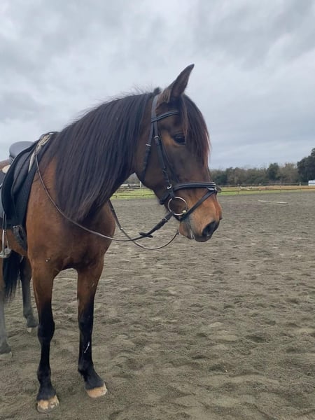 Yegua de 11 años raza PRE 160 cm de cruz aproximadamente con pasaporte y chip. No dispone de carta ANCCE. Ideal para rutas y inicio doma. De carácter noble y valiente con chispa. Sabe tenderse para bajar y facilitar subida. Precio negociable.