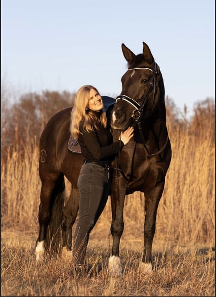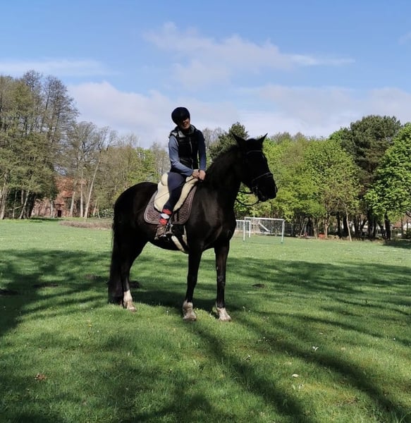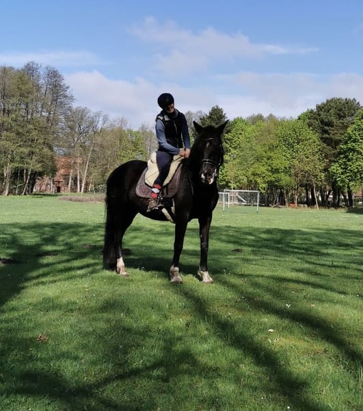 Tohni ( Tahona AGV ) ist eine gekörte PRE Stute, die Escalera gezogen ist und im modernen PRE Typ steht. Die Kompaktheit und Harmonie eines PRE sind bei ihr trotzdem noch klar zu erkennen. Der Vater von Tohni ist kein Geringerer als der Rapphengst Cacique, der die höchste Körauszeichnung eines PRE besitzt. In Tohnis Abstammung finden sich wahre Schätze wieder: Über ein leichtes Ermitano Inbreeding kommt sie gleich zweimal über den herausragenden Ganador VIII. Väterlicherseits geht es über das Gestüt Romero Benitez bis zum Aushängehengst der Yeguada Militär, Agente zurück. Mütterlicherseits führt Tohni über Kai-Kirse einen guten Schuss Boloix Blut und zusätzlich ebenfalls wieder die Yeguada Militär mit Agente als Stempelhengst. Dabei ist sicherlich nicht zu vergessen, dass die Ursprünge im Papier der Stute auf Cartujanos mit Novato und Hacendoso fußen, die zuchttechnisch hervorragende Grundlagen liefern. Neben ihren historisch bekannten Verwandten hat Tohni auch in der heutigen Zeit eine echte Berühmtheit in ihrer Familie: Sie ist eine Halbschwester zu dem mehrfachen SICAB Sieger Poeta de Susaeta. Was das Papier aussagt, findet sich auch im Charakter der Stute wieder: Tahona möchte gefallen, ist stets motiviert und sehr arbeits- und lernwillig. Dabei ist sie PRE typisch sehr sensibel und lernt schnell. Das Genie in dem Pferd möchte gelobt, verstanden und gefördert werden. Wer keinen guten Tag hat, zu viel Druck aufbaut oder sich "durchsetzen" möchte, kann unverrichteter Dinge wieder seine Koffer packen und nach Hause fahren. Vielleicht noch ein Möhrchen da lassen, denn das geht immer. Tohni wurde schonend angeritten und ist noch kein komplett fertiges Pferd. Sie beherrscht die Grundlagen und damit meine ich nicht Schritt, Trab, Galopp ( kann sie natürlich auch ), sondern eine Vielzahl von Seitengängen im Schritt sicher ( im Trab begonnen ), Rückwärts richten und korrektes Stehen. Dabei reagiert sie äußerst fein auf kleinste Hilfen. Besondere Freude hat Tohni an der Hand-und Langzügelarbeit. Hierbei macht sie eine tolle Figur. Tohni ist vierjährig nach Deutschland zum Züchter gekommen und wurde erst mit 8 Jahren angeritten, da sie vorher zwei Fohlen hatte. Für die Fohlen war sie eine wunderbare Mutter. Im Gelände ist Tohni absolut zuverlässig. Sie geht alleine und in der Gruppe ins Gelände. Sie ist jederzeit händelbar, aber dennoch nichts für jemanden, der ganz gemütlich ein wenig durch die Gegend spazieren möchte, denn sie hat ein gutes Grundtempo. Darüber hinaus ist Tahona kein Gewichtsträger und auch kein Anfängerpferd. Sie lässt sich super verladen, ist schmiedefromm und wird regelmäßig geimpft und entwurmt. Der Rhythmus zum Zähne machen hat sich auf ca. alle zwei Jahre eingependelt. Tohni geht barhuf und brauchte noch nie Eisen. Sie hatte keine Krankheiten oder Verletzungen, seit sie in meinem Besitz ist ( 7 Jahre ). Aktuell steht Tohni im Offenstall in einer Stutenherde und kommt nur bei ganz schlechtem Wetter in die Box. Auch in einer gemischten Herde mit ruhigen Wallachen kam sie gut zurecht. Sie ist eher rangniedrig. Sie sollte sich in ihrer zukünftigen Haltung viel bewegen können. Tohnis Zubehör ist nicht im Preis enthalten, kann aber mit erworben werden: Zum Beispiel Sattel: Deuber Ronda Deluxe S2 mit Zalea. Für ein Probereiten berechne ich 50€, die natürlich bei Übernahme des Pferdes mit dem Kaufpreis verrechnet werden.