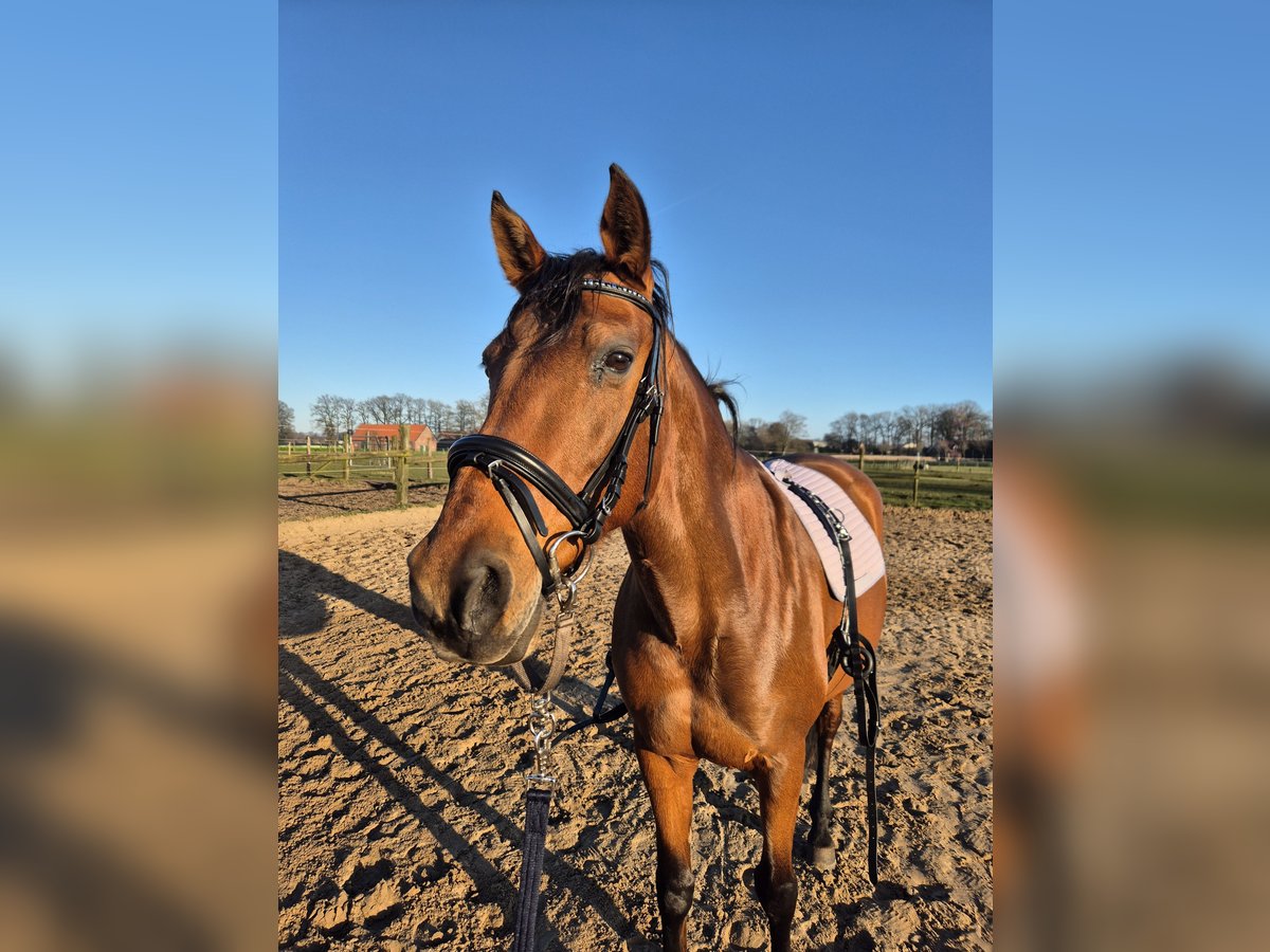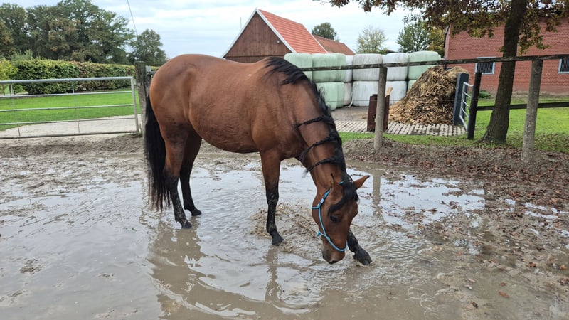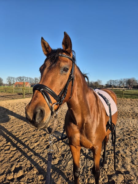 Na enige overweging heb ik met pijn in het hart besloten om onze merrie te herplaatsen. De reden daarvoor is dat zij helaas niet het juiste paard is voor ons gezin. Ze heeft tijd nodig om te wennen, bij voorkeur in een open stal. Ze houdt van grondwerk en doet dat erg goed; ze heeft tijd nodig om vertrouwen op te bouwen. Ze is zeer gevoelig en woont sinds vier jaar in Duitsland. Ze heeft een ervaren en zelfverzekerde ruiter nodig, dan laat ze zich probleemloos berijden. Helaas niet geschikt voor mijn 8-jarige dochter. In het terrein gaat ze liever samen met een tweede paard. Ze reageert gevoelig op de benen en de ruiter moet haar veiligheid bieden. Ze kent honden en kinderen en laat zich goed door kinderen leiden. Wij wensen haar een goed thuis, waar ze de juiste begeleiding kan krijgen, maar daarvoor missen wij de ervaring. Ze wordt geleverd met een zadel, bit, halster en een zweetdeken. Bij serieuze interesse hoor ik graag. Ze is geen beginnerspaard, omdat ze in sommige situaties wat schrikachtig is en behoefte heeft aan vertrouwen.