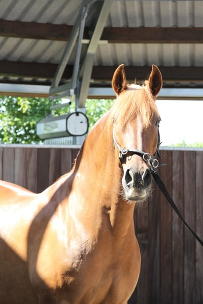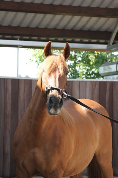 Mágica en Rojo, de betoverende in het rood, geboren in 2011, flaxrood van kleur. In Mágica en Rojo zijn adel en zachtaardigheid verenigd. Ze is ontspannen en rustig, een schat in de omgang. Haar beweging is van topkwaliteit, prachtig krachtig, ruimtegevend, taktzuiver, zonder campaneo (stijgen). Mágica is altijd vriendelijk en evenwichtig met een zacht vuur. Haar werk- en leergierigheid is prachtig. Ze is puur uit de Escalera-lijn gefokt. Deze lijn is beroemd om zijn geweldige paarden en er wordt met strenge criteria geselecteerd op schoonheid en vooral op sportieve prestaties. Deze paarden voldoen aan een ideaal: Droge edele, licht convex gevormde hoofden met fijne oren, waarvan de punten licht naar binnen gebogen zijn. Lichtere, beter berijdbare, maar toch van het type Pura Raza Española overeenkomstige halsen. Een bijna vierkant staande bovenlijn met een goede zadelplaats, bij zeer goede hoekstelling van de achterhand, om maar enkele kenmerken te noemen. Haar vader Unido IX (Koninkrijk) maakt zijn naam waar. Zijn fokster is niemand minder dan Dona Maria Dolores Cortes de la Escalera. Hij is een indrukwekkend mooi voshengst, zeer goed te hanteren en toont zijn veelzijdige talent in de dressuur, op ferias als paradepaard en voor de wagen. Haar moeder Rociera LI komt uit de bekende fokkerij van Don Hermanos Molero Malo. Ze heeft een geweldig karakter en brengt uitstekende veulens voort. Ze zelf is een typisch Escalera-gefokt paard met een grote aanleg voor dressuur. Zoals we het graag zien, is Mágica en Rojo van een stralende voskleur, volledig zonder witte aftekeningen. Ze is een lichtvos, haar manen zijn door het flaxen-gen opgehelderd en ook de staart, in het Spaans wordt deze bijzondere kleur "sorrel" genoemd. Mágica was een van onze succesvolle fokmerries, ze heeft vier zeer goede veulens gehad en wordt momenteel academisch aan de hand gewerkt. Ze kent het zadel en alles wat bij het leven van een rijpaard hoort en we hebben al meerdere keren in stap op haar rug mogen zitten. Mágica kent de longeercirkel, ze wordt bij ons regelmatig gebruikt voor conditietraining ter afwisseling en spieropbouw. Voor Mágica, net als voor al onze te koop aangeboden paarden, wensen we in de eerste plaats een lief persoon met verantwoordelijkheidsgevoel, die zorgvuldig en geduldig met zichzelf en het paard omgaat. Onze paarden zijn volledig onbedorven en hebben alleen goede ervaringen opgedaan. De schofthoogte werd op driejarige leeftijd gemeten tijdens de keuring. Mágica is gevaccineerd tegen influenza, tetanus en West-Nijl en wordt vier keer per jaar ontwormd. Ze was altijd gezond. https://www.treidelhof-gestuet.de/pura-raza-espanola-zucht/zuchtstuten-pre/m%C3%A1gica-en-rojo/