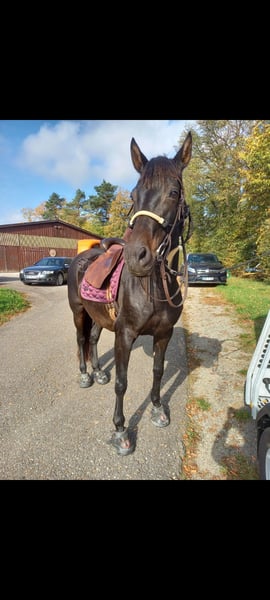 Schweren Herzens habe ich mich nach langem Hin und Her dazu entschieden, meine geliebte Stute Optima zu verkaufen. Ich werde ihr leider nichtmehr gerecht. Sie ist eine eingetragene PRE Stute, war damals eine Zuchtstute und wurde im Mai 2009 geboren und hat ein Stockmaß von ungefähr 1,61 cm. Ich habe sie vor etwa zwei Jahren direkt vom Gestüt geholt und seitdem wurde sie von mir regelmäßig geritten und bewegt. Sie kann Seitengänge, Kruppe herein und in der Bodenarbeit ist sie einfach nur zauberhaft. Sie liebt es betüttelt zu werden und sucht einen Freizeitpartner, der sie versteht und auch ihre Macken akzeptiert. Sie hat unterm Reiter im Galopp Probleme sich auszubalancieren. Im Gelände geht sie sowohl in der Gruppe, als auch alleine. Spaniertypisch ist sie temperamentvoll und sensibel. Im Gelände findet sie als auch gerne Gespenster, die sich in den Büschen befinden. Hinter einem Begleitpferd ist sie aber absolut unempfindlich. Optima braucht eine geduldige und erfahrene Person, die ihr viel Zeit gibt. Wenn sie ihren Partner hat, geht sie mit einem durchs Feuer. Auch Kinder hat sie wahnsinnig gerne. Ab und zu hatte sie Reitanfänger oben drauf. Sie ist barhuf und steht im Offenstall, indem sie relativ ranghoch, aber sehr sozial ist. Sie geht dem Stress in der Herde eher aus dem Weg. Die Physio ist regelmäßig bei ihr dagewesen. Ich würde mir für sie sehr wünschen, dass sie in unserem Stall bleiben darf. Noch wichtiger ist es mir aber, jemand Passendes für sie zu finden. Ihr angepasster Iberosattel kann für 2 000€ extra erworben werden. Bei nettem Kontakt kann gerne ein Treffen ausgemacht werden. Fürs Probereiten würde ich 25€ verlangen, um dem Reittourismus vorzubeugen. Platz geht vor Preis