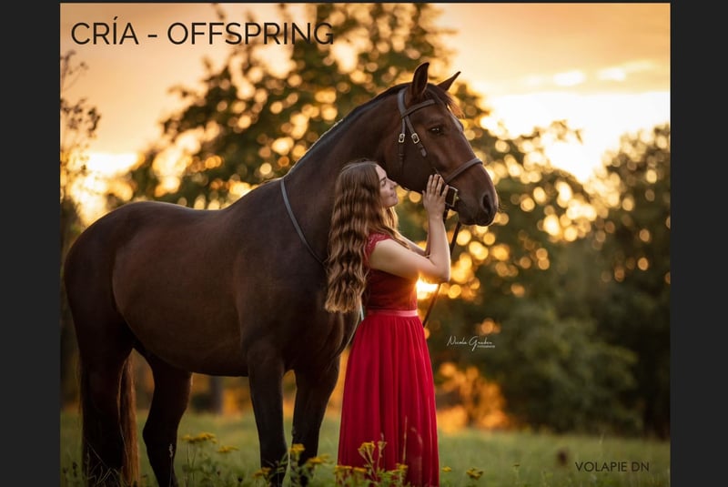 Yegua de cría contrastada, hija del multipremiado Velero XI de la Yeguada Militar, con sus crías en jinetes europeos y americanos. Se ofrece en venta una magnífica yegua de PRE, nacida en 2008. De color castaño, con una alzada de 166 cm, perfecta para quienes buscan un ejemplar de gran presencia y nobleza. Proveniente de una excelente genealogía, esta yegua combina belleza, resistencia y carácter, ideal para reproducción; está iniciada en el enganche. Capa genética (genotipo): ggAAEeCCNN Doma: de cuadra; principios de enganche. Comentarios: muy buenos orígenes y movimientos. Da crías de capa baya, alazana, palomina, castaña y torda. No pierda la oportunidad de incorporar a su establo una yegua de calidad excepcional. Para más información y detalles, no dude en contactarnos.