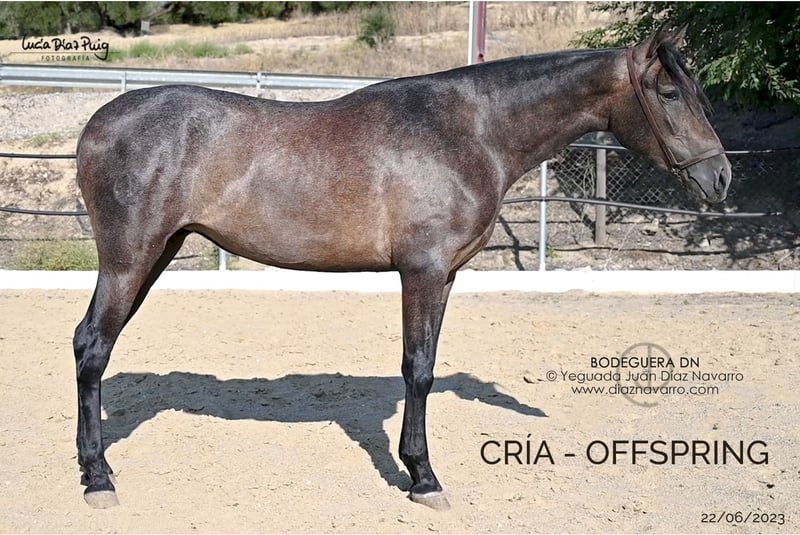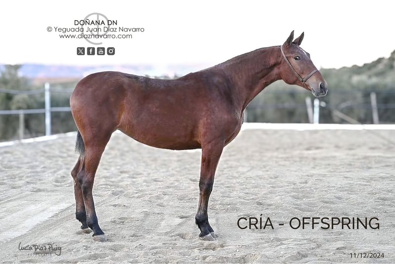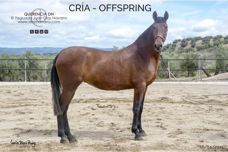 Zuchtstute mit nachweislicher Abstammung, Tochter des mehrfach ausgezeichneten Velero XI aus der Yeguada Militar, mit Nachkommen bei europäischen und amerikanischen Reitern. Zum Verkauf steht eine hervorragende PRE-Stute, geboren im Jahr 2008. Sie ist kastanienbraun, mit einer Stockmaß von 1,66 m, ideal für alle, die ein Pferd mit beeindruckender Erscheinung und edlem Wesen suchen. Sie stammt aus einer ausgezeichneten Linie und vereint Schönheit, Widerstandskraft und Charakter – perfekt für die Zucht; sie ist an die Kutsche gewöhnt. Genetischer Hintergrund (Genotyp): ggAAEeCCNN Ausbildung: im Stall- und Kutschengang; erste Schritte im Fahren. Bemerkungen: sehr gute Abstammung und Bewegungen. Sie bringt Nachkommen in den Farben Bay, Palomino, Alazan, Kastanie und Torda hervor. Linien: Levitón, Deco, Velero XI, Lego, Deco, Agente, Colombiano III. Yeguada Militar, Vizconde de la Montesina, Urquijo, D. Benito Zoido, Bohorquez, Salvatierra, Cárdenas, Martínez Boloix und Romero Benítez. Nutzen Sie die Gelegenheit, eine außergewöhnliche Stute in Ihren Zuchtbestand aufzunehmen. Für weitere Informationen und Details stehen wir Ihnen gerne zur Verfügung.