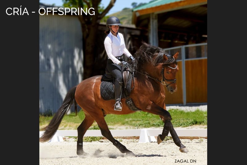Yegua de cría contrastada, hija del multipremiado Velero XI de la Yeguada Militar, con sus crías en jinetes europeos y americanos. Se ofrece en venta una magnífica yegua de PRE, nacida en 2008. De color castaño, con una alzada de 166 cm, perfecta para quienes buscan un ejemplar de gran presencia y nobleza. Proveniente de una excelente genealogía, esta yegua combina belleza, resistencia y carácter, ideal para reproducción; está iniciada en el enganche. Capa genética (genotipo): ggAAEeCCNN Doma: de cuadra; principios de enganche. Comentarios: muy buenos orígenes y movimientos. Da crías de capa baya, alazana, palomina, castaña y torda. Líneas: Levitón, Deco, Velero XI, Lego, Deco, Agente, Colombiano III. Yeguada Militar, Vizconde de la Montesina, Urquijo, D. Benito Zoido, Bohorquez, Salvatierra, Cárdenas, Martínez Boloix y Romero Benítez. No pierda la oportunidad de incorporar a su establo una yegua de calidad excepcional. Para más información y detalles, no dude en contactarnos.