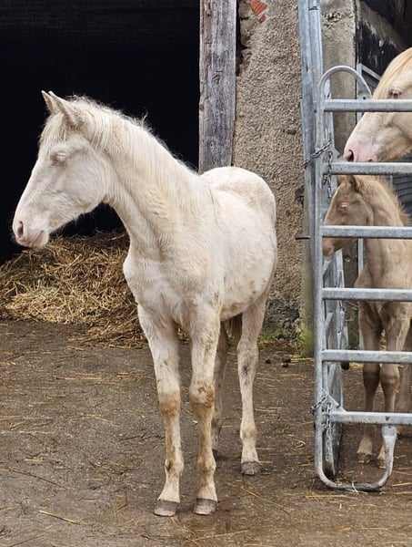 Candela Kubny ist im Mai 2025 geboren, sie ist eine sehr zutrauliche, verschmusste, liebenswerte und sanfte Cremelo PRE Stute, die ANCCE Papiere sind beantragt mit Gehn Cod. Ich denke das Candela ca. 160cm gross werden wird. Ihre Mutter und zwei Halbschwestern können ebenfalls bei mir auf dem Hof besichtigt werden. Sie beherscht das Fohlen ABC sehr gut, inklv. Hänger fahren, auch ist sie an Hunde und andere Hoftiere gewohnt, zudem sind ihr Hofmaschienen und spielende Kinder vertraut. Ihre Mutter hat einen Körindex von 94,39. Der Vater Kaiser VRL II hat einen Körindex von 93,46. Candela ist mehrfach entwutmt, zuletzt im Januar 2026. MV: Entendido A