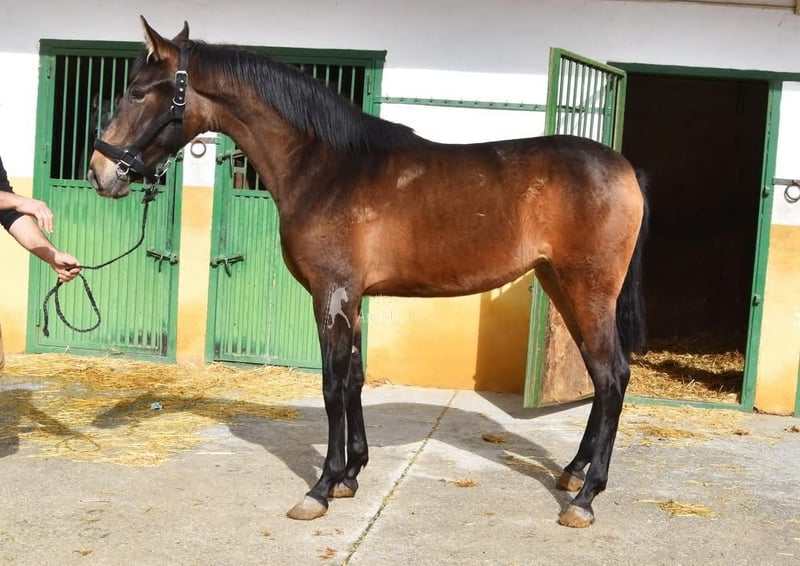 härlig karaktär, nyfiken, rå, står ute med andra ston, speciell färg, PRE dun med papper, bra rörelser och härstamning, härstamning: Alfredo Gala, Pablo Perez Jimenez, Castillo Villafranca, Andres Holgado Dianes, Ururopa Mariscal de Torre och Ururopa Remache XIII är kvalificerade www.elegante-andalusier.com