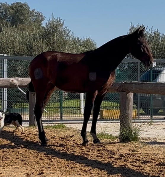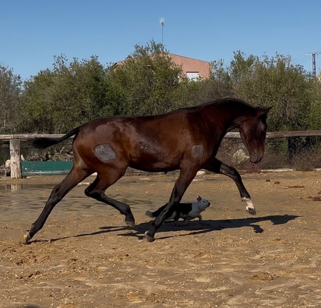 Diese wunderschöne Stute besticht durch ihr außergewöhnlich gutes Gangwerk. Mit ihren zwei Jahren, weiß sie sich zu bewegen. Das wird eine tolle Stute, die sich für die Dressur oder auch für die Zucht empfiehlt. Im Umgang ist brav und gut erzogen. Ist halfterführig und kennt auch schon das Putzen. Ihre Abstammung ist vom Feinsten. Ihr Vater ist der große Rappe Nelson (Yeguada Militar), sein Vater Gerente geht auf Remache zurück. Ihre Mutter vereint Candau Blut, Esclaera und den bewegungsstarke Vinatero III Das Pferd wird im Auftrag verkauft. Er kann gerne bei uns noch in Beritt bleiben. Eine AKU wird kurzfristig organisiert. Internationaler Transport.