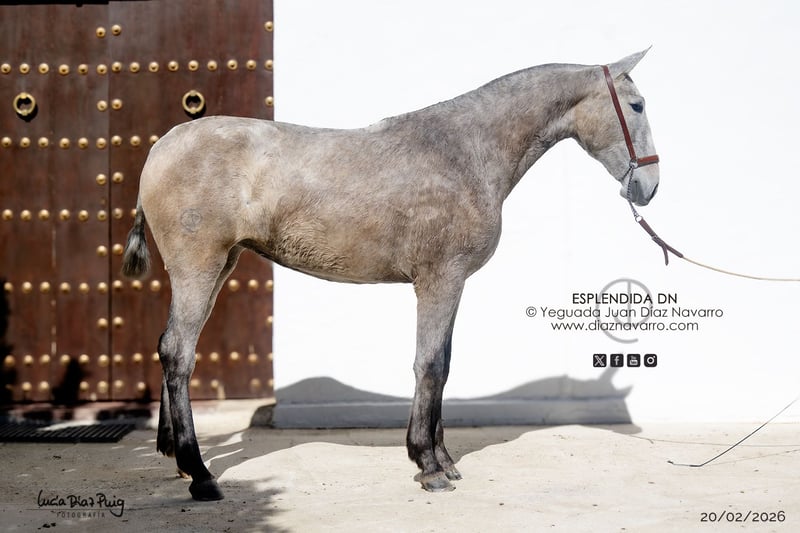 ¡Oportunidad de adquirir una bella y prometedora yegua! https://diaznavarro.es/esplendida-dn Se ofrece en venta una preciosa PRE, de raza pura, nacida en el año 2024. Es una yegua de color tordo picazo, con un aspecto impresionante y una presencia destacada. Ideal para quienes buscan un ejemplar de calidad, con potencial para doma, monta o cría. Nació de capa castaña. Futura potra de concurso. Muy movida. Líneas: Marco Antonio, Velero XI, Deco, Llamativo II, Colombiano III. Ventura Camacho, Granda, Yeguada Militar, Vizconde de la Montesina, Fernández Daza, Urquijo, D. Benito Zoido, Bohorquez. No pierda la oportunidad de conocerla y valorar todo su potencial. Para más información, no dude en contactarnos. WhatsApp: +34 629773610