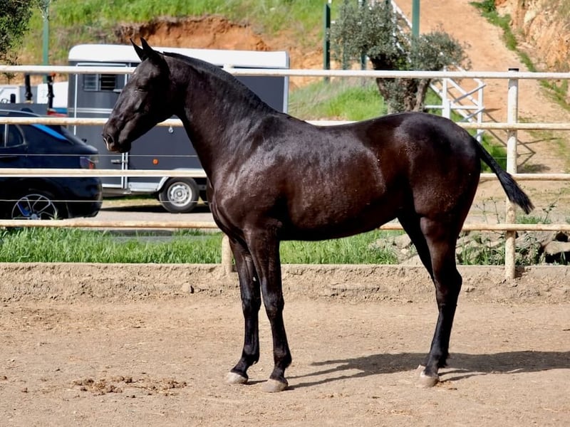 Außergewöhnliche Pura Raza Española Stute, geboren im Jahr 2024, die bereits durch ihre Qualität, Ausstrahlung und ihr großes Zukunftspotenzial deutlich hervorsticht. Mit einer ungefähren Größe von 1,66 m, für ihr Alter eher ungewöhnlich, vereint sie Größe, Struktur und Eleganz in einem äußerst attraktiven Gesamtbild. Mit ihrer schwarzen Fellfarbe, die derzeit zu den gefragtesten im Markt gehört, stellt sie eine besonders interessante Gelegenheit dar, insbesondere wenn man die Schwierigkeit berücksichtigt, junge Pferde zu finden, die gleichzeitig Qualität, Größe und Genetik in dieser Farbe vereinen. Exterieurmäßig zeigt sie eine klare Ausrichtung auf den Morphologie-Wettbewerb: harmonische Linien, ein ausdrucksstarker Kopf, korrekte Gliedmaßen und eine Silhouette, die Balance und Funktionalität vermittelt. In der Bewegung lässt sie bereits vielversprechende Qualitäten erkennen, mit ausdrucksstarken, elastischen Grundgangarten und guter Mechanik, was ihren Wert sowohl für den Showring als auch für ihre zukünftige Entwicklung unterstreicht. Eine ihrer größten Stärken liegt in ihrer Abstammung: Sie ist eine Enkelin von Armas Serreño II (Plaza de Armas), einem anerkannten Referenzhengst innerhalb der Rasse, was ihr einen erheblichen genetischen Mehrwert und großes Potenzial für die Zucht verleiht. Insgesamt handelt es sich um eine Stute, die im aktuellen Markt nur sehr schwer zu finden ist, ideal sowohl für Käufer mit Ambitionen im Morphologie-Wettbewerb als auch für Züchter, die sich auf die Zucht hochwertiger schwarzer Pferde konzentrieren.