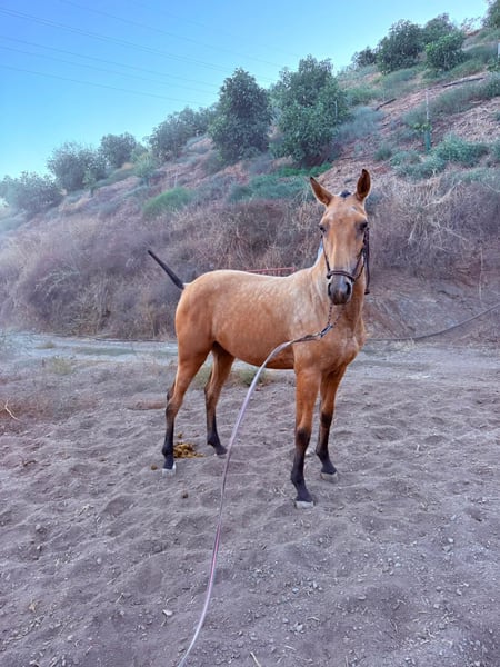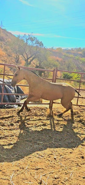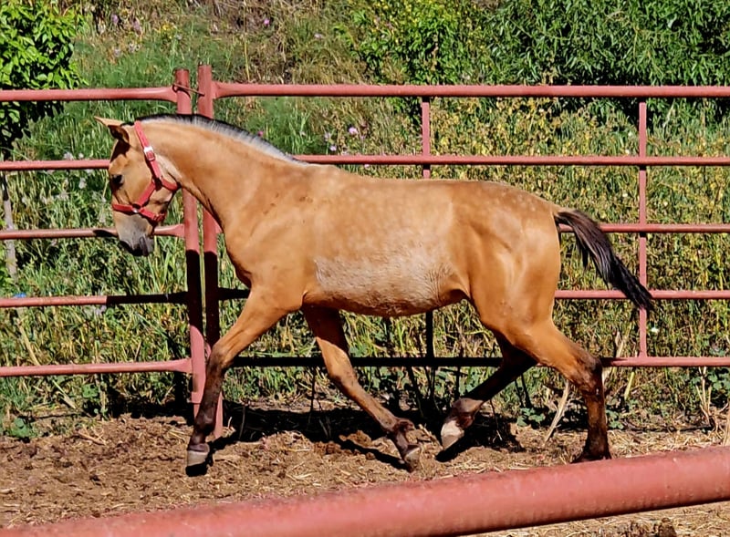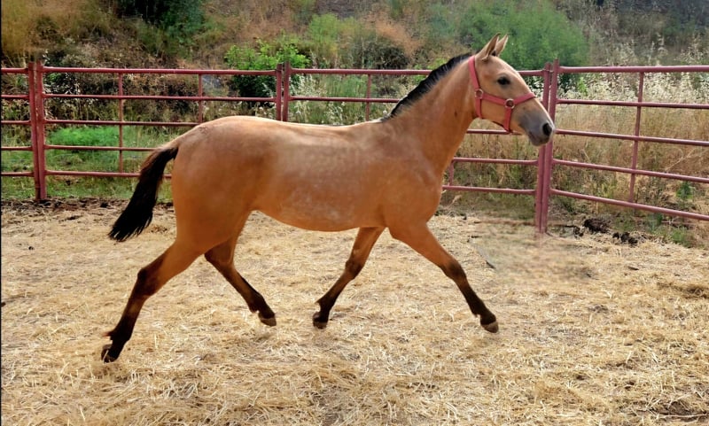 Potra baya PRE con buena talla, muy noble y excelentes movimientos.