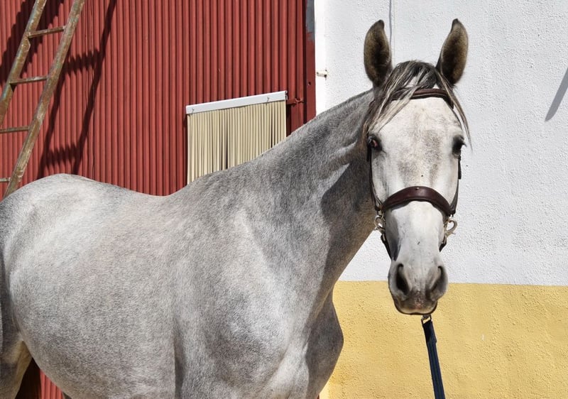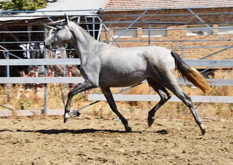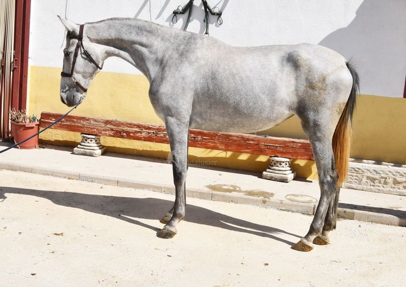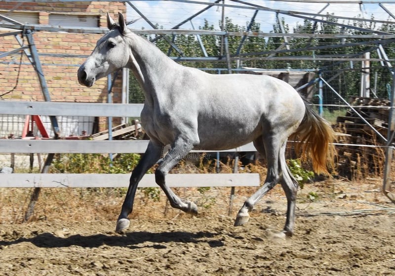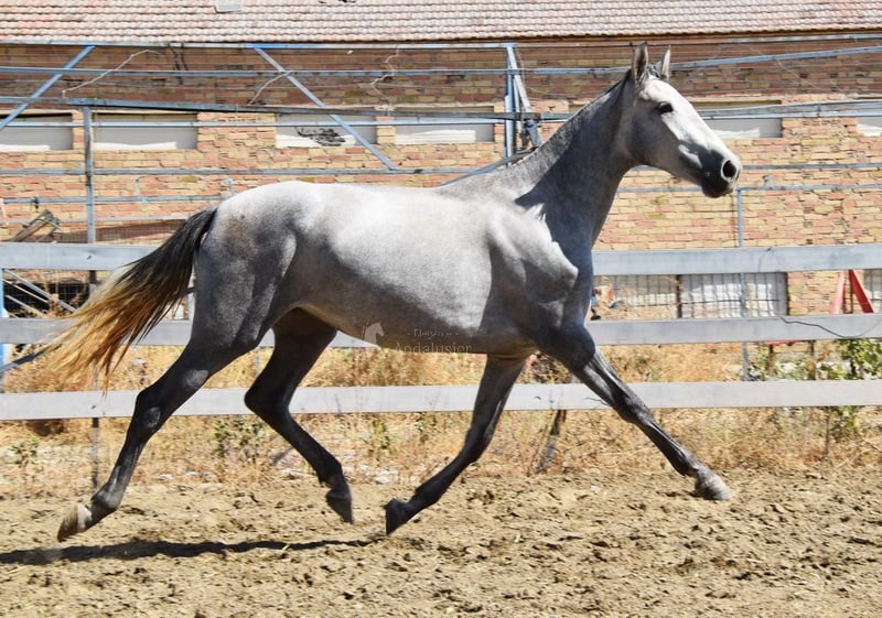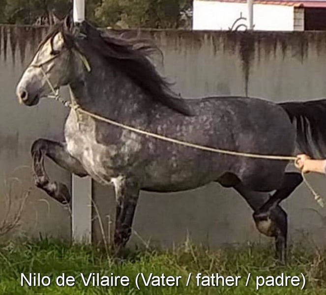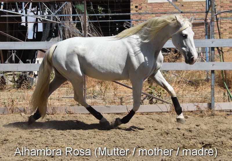 dear character, untrained, lunged, large, good movements and lineage, lineage: Yeguada Vilaire, Terry, Marin Garcia, los Retamales, Yeguada la Rosa, has several qualified ancestors www.elegante-andalusier.com