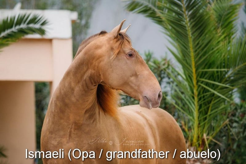 lieber Charakter, neugierig, menschenbezogen, roh, steht mit anderen Stuten draußen, spezielle Fabe, Isabela (PrlPrl) mit PRE Papieren, Abstammung: Yeguada San Benito Abad, Yeguada la Llana, las Medranas, Escalera, Bohorquez, Ururopa Gaucho III ist qualifiziert www.elegante-andalusier.com