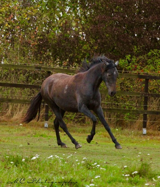 Titel: Charmante PRE merrie met indrukwekkend uiterlijk te koop Advertentietekst: Te koop is een prachtige PRE merrie geboren in 2023, met een prachtige grijs zwarte vacht en een geschatte eindhoogte van 160 cm is ze een echte blikvanger. Deze indrukwekkende merrie maakt niet alleen indruk met haar schoonheid, maar ook met haar zachte en evenwichtige karakter. Ze is bij uitstek geschikt als toekomstig recreatiepaard. Haar afstamming is zuiver Spaans (PRE) en ze is in alle opzichten een echte parel. Ze heeft een vriendelijk en rustig karakter. Deze merrie is een echte schat en klaar om haar nieuwe thuis te vinden. Ze is klaar om haar reis te beginnen naar een liefdevol thuis waar ze de aandacht en zorg zal krijgen die ze verdient. Als je op zoek bent naar een betrouwbare en liefdevolle metgezel, dan is deze PRE-merrie echt iets voor jou. Aarzel niet om contact met ons op te nemen voor meer informatie of een bezichtiging. Houd er rekening mee dat we alleen serieuze aanvragen in overweging nemen. We kijken ernaar uit van je te horen en je voor te stellen aan onze prachtige merrie.