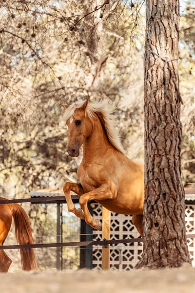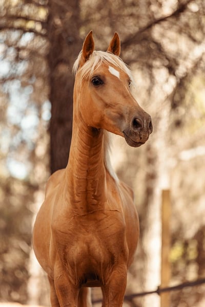 Pouliche née en août 2022. Capa Palomina (mère Sorrel et père Palomino - dernières photos des parents) Une pouliche très vive et joyeuse. Très affectueuse et très tactile.