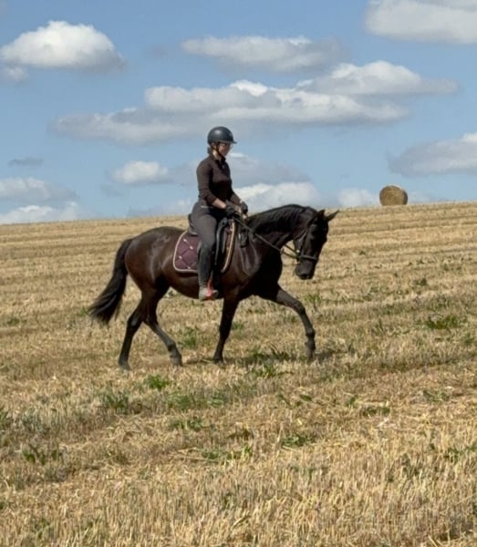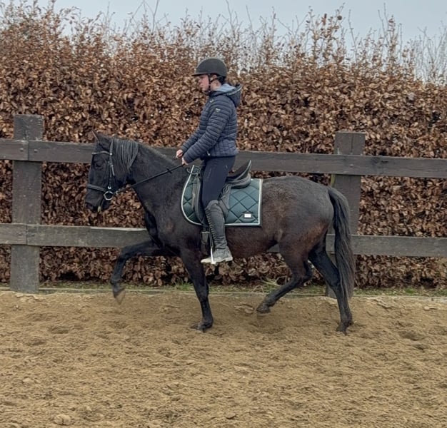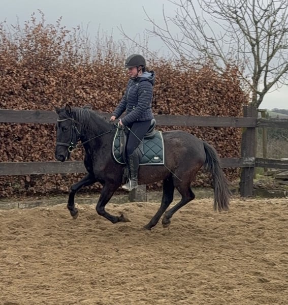 Zum Verkauf steht eine 4 Jahre alte, etwa 153cm große PRE Stute mit voller Abstammung. Sie wurde letztes Jahr bei uns angeritten und zeigt sich nun schon sehr schön unter dem Sattel. Sie geht leicht in Anlehnung und ist brav in allen Gangarten. Einen kleinen Sprung macht sie auch bereits ohne Probleme. Dies kann natürlich noch weiter gefördert werden. Auch im Gelände zeigte sie sich bisher immer brav, cool und gute händelbar. Sie lebt im Offenstall und ist absolut verträglich. Die Box kennt sie aber auch. Wer ein tollen Partner für Sport oder Freizeit sucht, ist bei ihr genau richtig. Krankheiten oder Allergien sind nicht bekannt. Eine AKU darf gerne gemacht werden. Für das Probereiten, Vorreiten oder anderes Ausprobieren des Pferdes berechnen wir 35€. Beim Kauf wird dies gutgeschrieben. Gerne anrufen oder eine Nachricht senden 0157 36803742 Alle Angaben ohne Gewähr, Preisänderungen vorbehalten, Transport möglich, Onlinekauf möglich