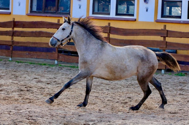 **Sales Advertisement: Beautiful PRE Mare for Sale** We offer a talented PRE mare for sale. **Features:** - **Breed:** PRE (Pura Raza Española) - **Gender:** Mare - **Year of Birth:** 2022 - **Color:** Apple Grey - **Height:** 160 cm - **Suitability:** Dressage This mare impresses with her charming character and her promising abilities in dressage. She is well-mannered, easy to handle, and already shows promising basic gaits. Her friendly nature makes her an ideal partner for riders who enjoy dressage. She has just turned 3 years old and is being cautiously lunged. If you are interested or have any further questions, we look forward to your message!