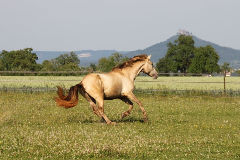 **Verkaufsanzeige: Nachwuchsstute geb. 2022 – Pearl, 160 cm** Zum Verkauf steht eine vielversprechende Nachwuchsstute, geboren im Mai 2022. Kelea besticht durch ihre elegante, aber trotzdem barocke Erscheinung und ihr vielversprechendes Bewegungspotential. Mit einem Stockmaß von 160 cm bietet sie die perfekte Größe für den ambitionierten Freizeitreiter oder den zukünftigen Turnierreiter. Sie verfügt über ein freundliches, aufgeschlossenes Wesen, das sie zu einem angenehmen Partner macht. Ihr ausgeglichener Charakter und Lernwille lassen eine vielversprechende sportliche Entwicklung vermuten. Auch für die Zucht kann sie sehr interessant sein, da das Pearl-Gen ihrer Mutterlinie bisher unbekannt ist. Sie hat den Farbgencode: ggEeaaPrlPrl Kelea ist bei uns geboren und sorglos in einer gemischten Herde im Offenstall mit Weidegang aufgewachsen. Insgesamt ist sie eher ein Spätentwickler, weshalb wir sie bisher auch nicht angeritten haben. Nun ist sie aber bereit, ihre weitere Ausbildung aufzunehmen und sich zu einem zuverlässigen Allround-Pferde-Partner zu entwickeln. Selbstverständlich wurde sie regelmäßig entwurmt, die Hufe gemacht und Tetanus geimpft. Letztes Jahr haben wir einen Züchtercheck machen lassen, bei dem alle 14 Röntgenbilder ohne jeglichen Befund waren. Bei Interesse oder weiteren Fragen stehe ich gerne zur Verfügung.