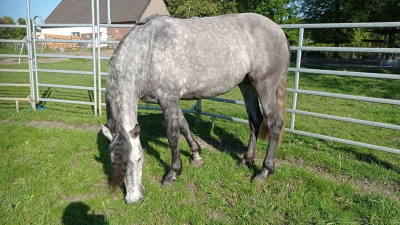 Aus schwerwiegenden gesundheitlichen Problemen muss ich schweren Herzenz meine 4j. PRE Stute abgeben. Meine Maus ist für mich die beste der Welt, jedoch kann ich ihr nicht mehr gerecht werden und suche auf diesem Wege ein 5✴️ Zuhause. Sie ist lieb im Umgang, hat den Schmied zum schlabbern gern, der behauptet, dass er so gute Hufe in den letzten 15 Jahren nicht gesehen hat. Hänger fahren ist kein Problem, ebenso hat der Tierarzt bei ihr gute Karten obwohl er sie nur zum Impfen usw. gesehen hat. Ausbildungstechnisch muss ich gestehen, dass ich hauptsächlich aus meinen gesundheitlichen Gründen sie nur anlongiert habe. Übungen von Gehorsam, Beweglichkeit und Nachgibigkeit üben wir immer wieder. Spazieren gehen ist ebenfalls ohne Probleme möglich. Bei zweifelhaften Vorkommen, lässt sie sich mit sanften Worten beruhigen und ist wieder bei einem. Pardy ist verschmust und anhänglich und lebt in einer gemischten Offenstall Herde mit 24/7 Heuzugang. Im Rang steht sie unter der Leitstute. Selbst wenn sie mal zickig sein sollte ist sie nie ungerecht oder bös. Selbst wenn sie auf der entferntesten Weide ist, kommt sie auf Pfiff zu mir. Ich wünsche mir für sie einen Menschen mit Pferdeverstand, der mit ihr durch dick und dünn geht. Ein Offenstall mit freiem Heuzugang ist Voraussetzung. Durch ihre Blutlinien ist sie nahezu für allen Disziplinien geeignet. Händler haben bei uns keine Schnitte! Platz vor Preis.